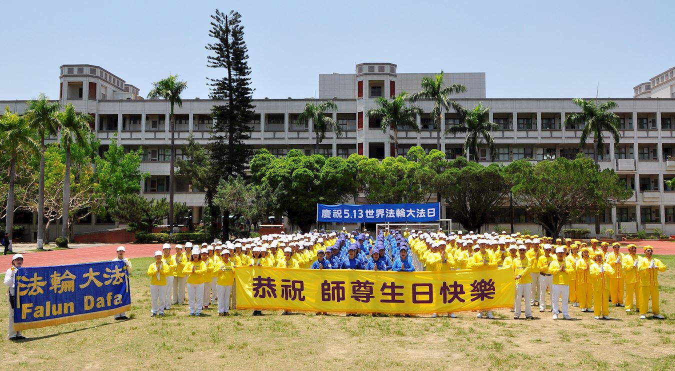 “五一三”即将来临之际,台湾府城部份法轮功学员于四月三十日举办盛大庆祝游行活动,并于中午在绿意盎然的胜利国小操场合影,齐声“恭祝师尊生日快乐”,表达对师父由衷的感恩,分享大法带给生命的希望与美好。