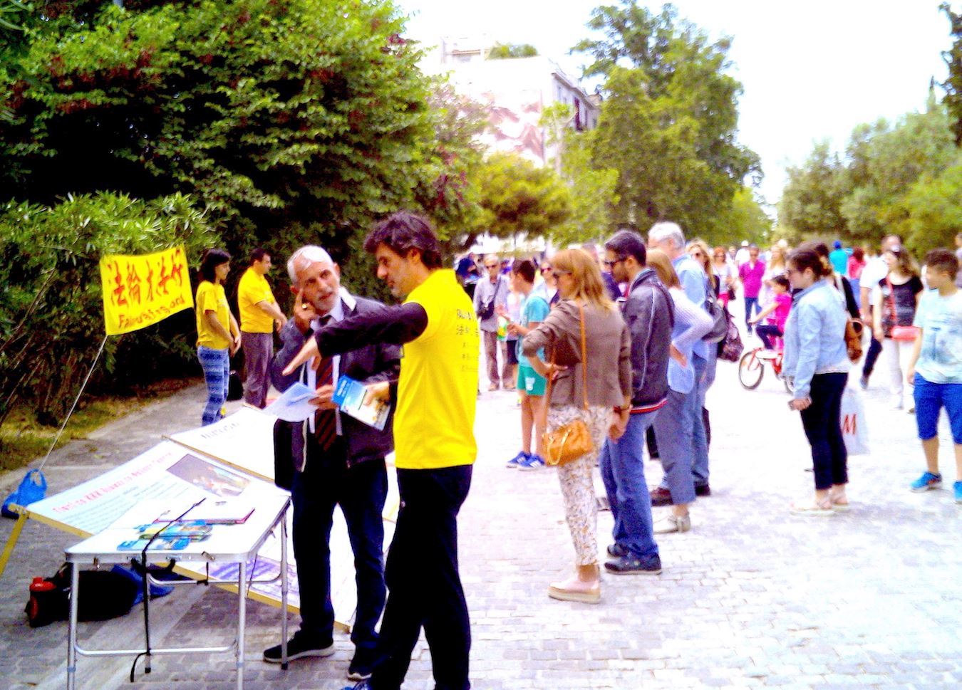 下午学员们来到雅典著名景点卫城(Acropolis)演示功法,庆祝法轮大法洪传二十五周年。讲真相征签,呼吁各国人民共同制止中共暴政,停止迫害法轮功。