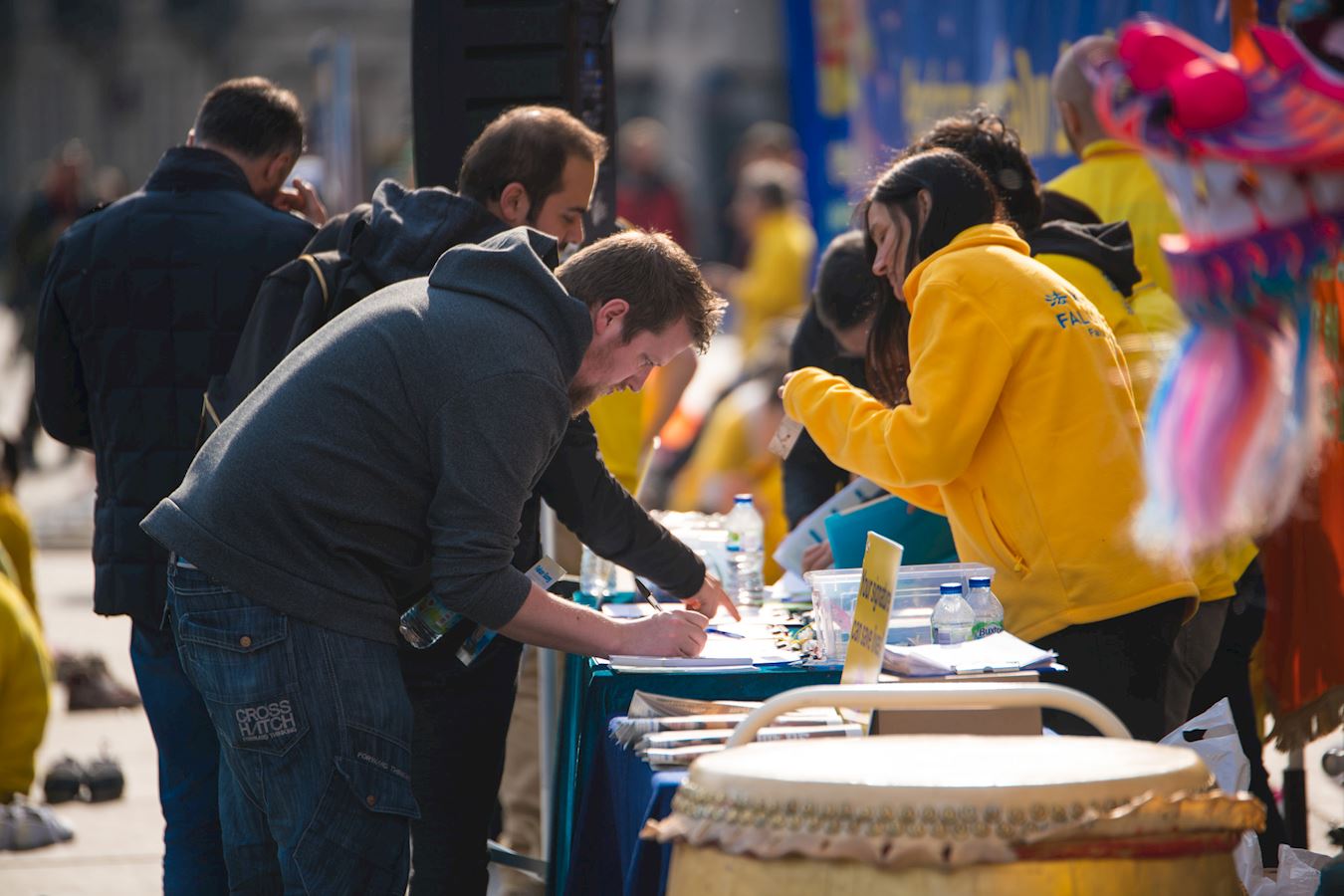 来自爱尔兰的彼得现在伦敦工作。他推着自行车,停在活动场地旁,认真听新闻发布会上的嘉宾发言。当嘉宾发完言时,他便鼓掌表达支持。彼得说,他知道法轮功在中国遭受迫害,他之前在伦敦唐人街看过法轮功真相资料。他说,“今天是第一次听到(法轮功学员的)证言,讲述遭受的迫害。刚才那位女士发言讲她的经历,我感到很难过。人们应该有信仰的自由。”看着广场上的法轮功学员,彼得说,“他们那么和平。举办这样的活动很好,能让更多人知道迫害在发生。”