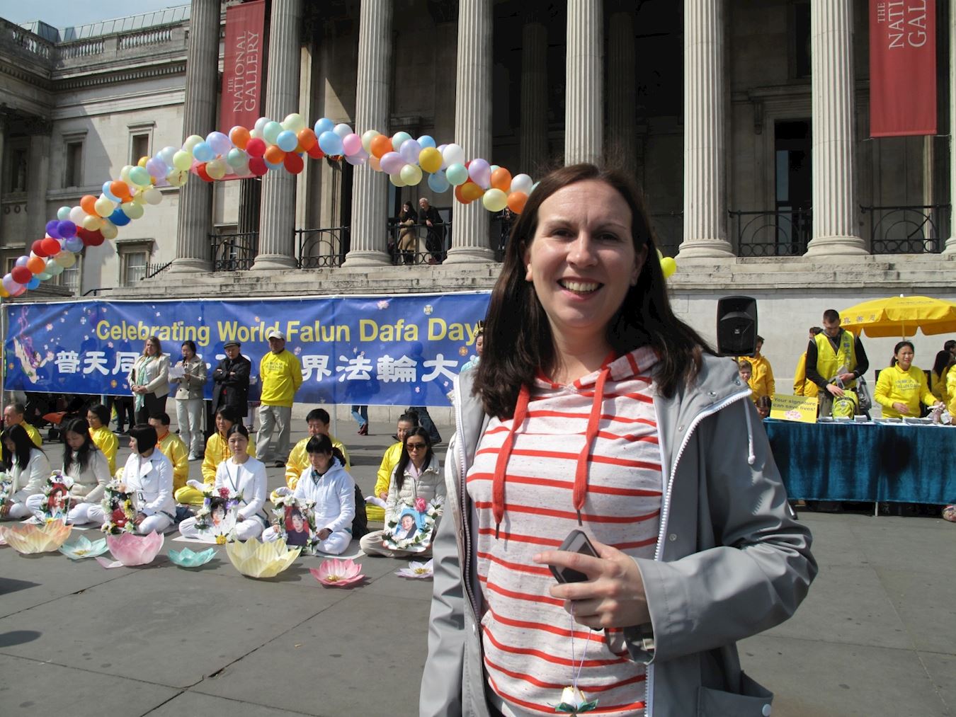 英国女士艾玛驻足聆听“庆祝世界法轮大法日”新闻发布会,她介绍说自己曾在中国生活过几年,知道法轮功被中共打压,她说自己在中国时也有中国朋友告诉她法轮功受到的残酷迫害,她认为迫害太糟糕了。她还表示自己非常尊敬大卫·麦塔斯,感谢他在世界各地揭露发生在中国的活摘人体器官的罪行的正义之举。艾玛最后表示自己非常支持法轮功学员讲真相反迫害,祝法轮功学员成功。