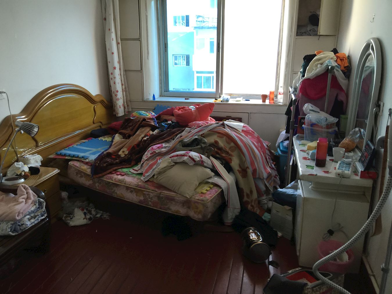 到了401室时已经是半夜十一点多了。当监室的大铁门咣当一声关上时,监室的管房的女孩赶忙跑下板铺问我:“你是犯了什么罪才进来的?”我回答她:“我没罪!我是炼法轮功的!”那女孩赶忙说:“阿姨,我知道炼法轮功的都是好人,原来我在别的房里就有炼法轮功的阿姨,她还教我好几首《洪吟》呢。今天太晚了,你先休息吧,白天再聊。”我被安排到左边是艾滋病诈骗犯,右边是吸毒犯。夜里值班的犯人往我身上盖犯人穿的马甲,我拒绝盖犯人的马甲。