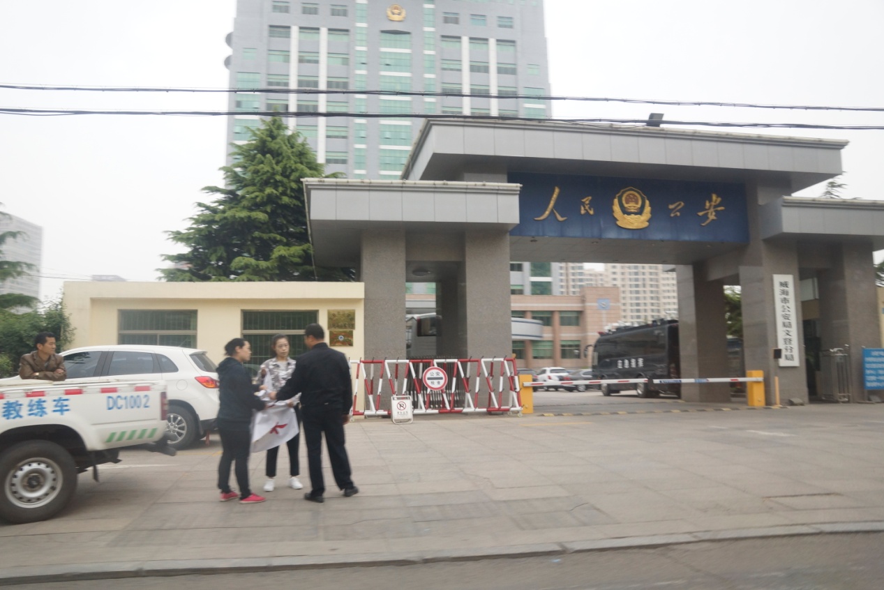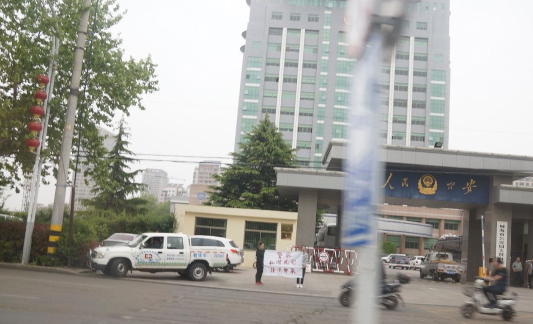 公安局门卫叫来了国保大队的人,这些人叫嚣着“你妈犯法了,你们家墙上还写着‘法轮大法好’,你们在这儿打横幅也是犯法。”