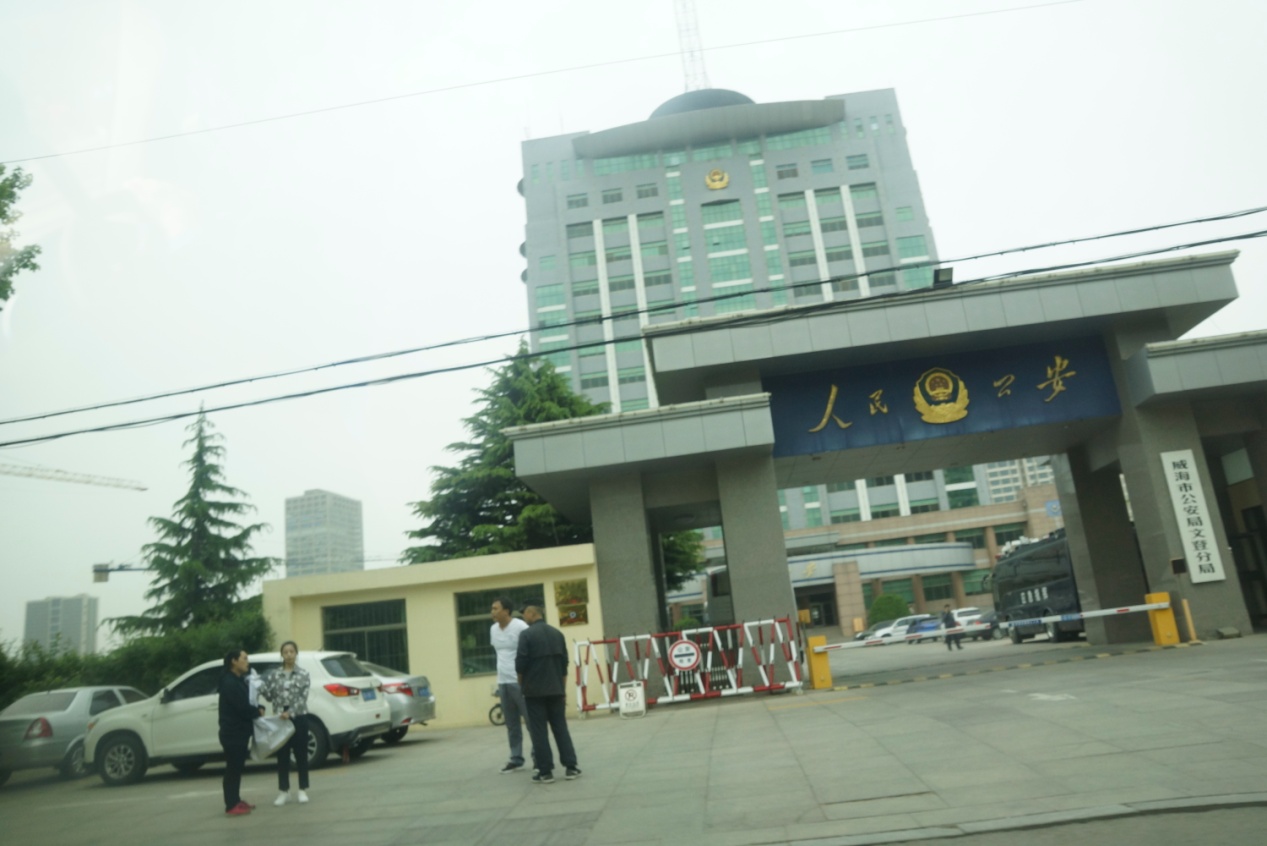 5月8日,洪焕芹的两个女儿在文登区公安局门口打出“警察私闯民宅绑架”的横幅,要求释放自己的母亲。