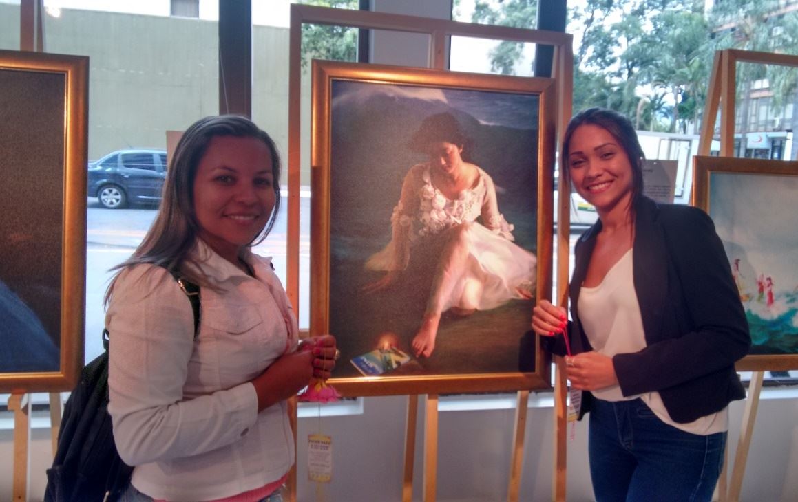 两个职业技校的学生Juliana和Lucinda 参观了画展,对法轮大法这一修炼形式产生浓厚兴趣,了解了法轮的涵义和佛家万字符的历史,对七千多大法学员在台北排字炼功非常羡慕。询问了炼功点。她们对中共迫害法轮功表示震惊,无法接受这样邪恶的政权的存在。
