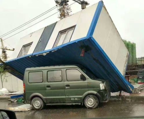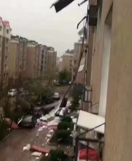 一时间天昏地暗,狂风嚎叫,又阴又冷惊恐吓人,风越来越大,雨水就象瓢泼一样。楼上的楼盖上的东西不断横飞下落,我和几个行人躲在车库雨打下面不敢往前走了,这时我膝盖下面的外裤和鞋都淋湿了。