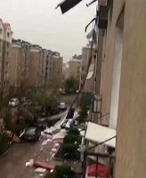 我走出女儿家不远抬头就看西面(我家方向)天黑的吓人,几秒钟的功夫,黑云就随着狂风和瓢泼大雨飞速过来了,路人的雨伞一下就折断了,一个黄塑料桶从楼上掉下来,砸在我前面人的脚下,把那人吓得“妈呀”一声,抱着脑袋跑。