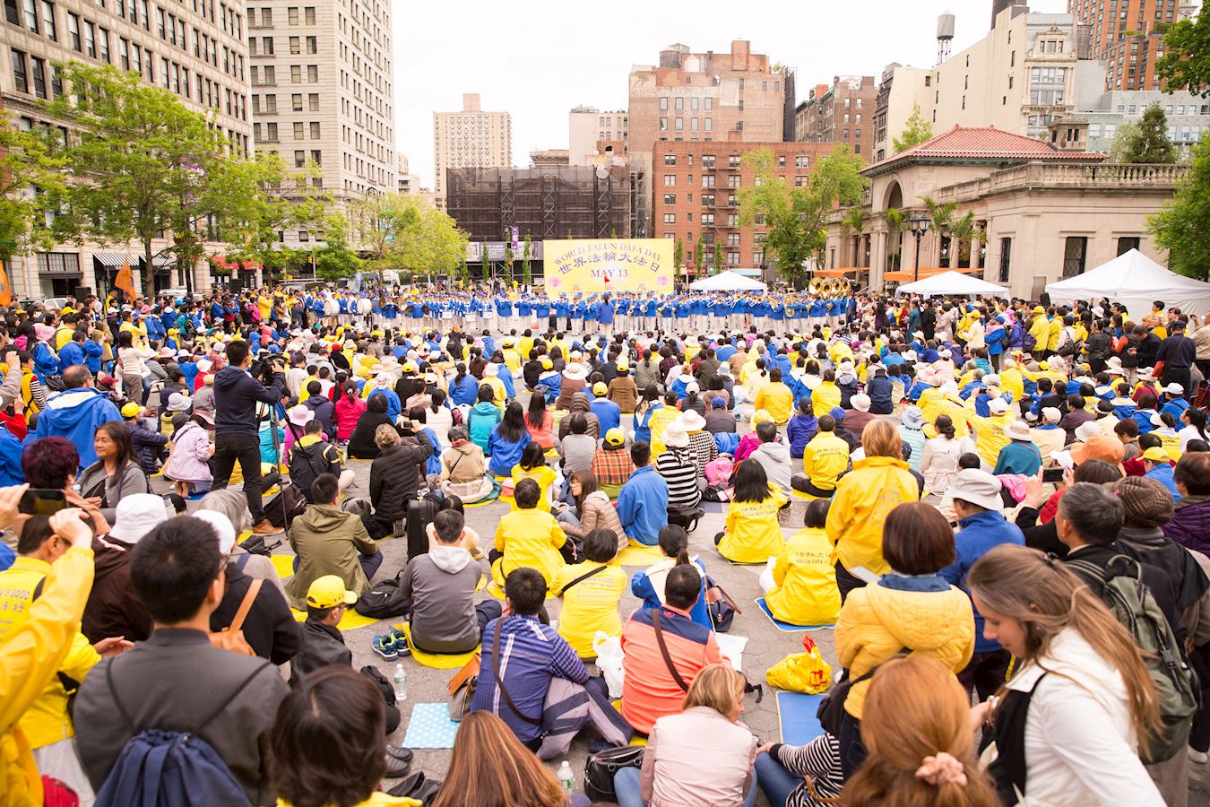 五月十二日来自世界各地的万名法轮功学员将在世界的中心——时代广场上举行盛大游行,并与五月十三日大法日当天举行大型排字颂扬大法弘传世间二十五周年。在此普天同庆的伟大节日里,法轮功学员相聚纽约,赞颂师尊的洪恩浩荡和大法的圣德。