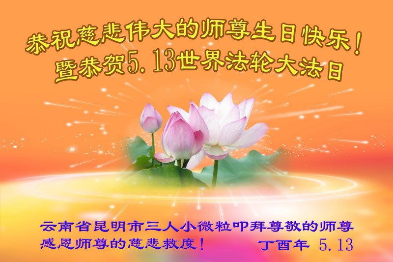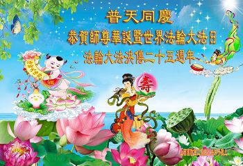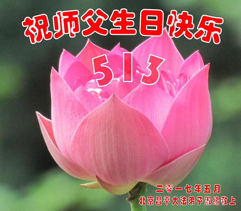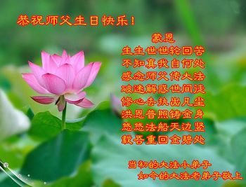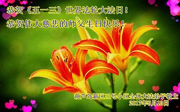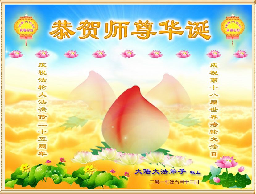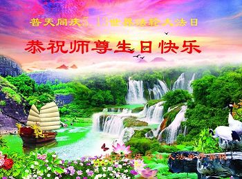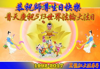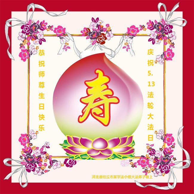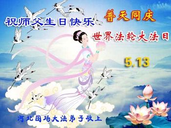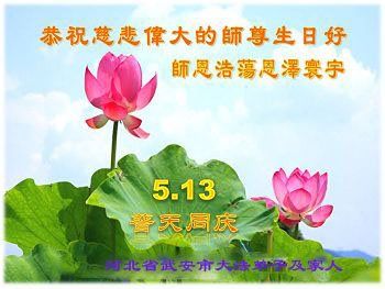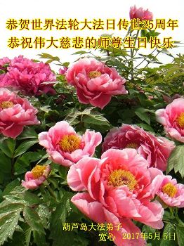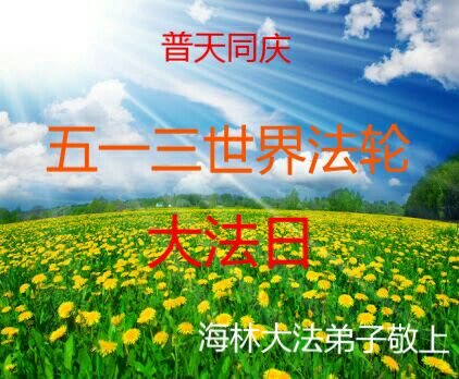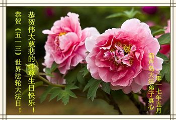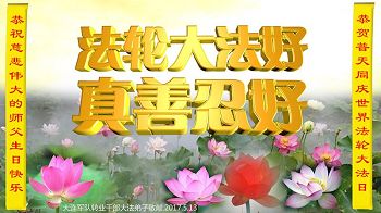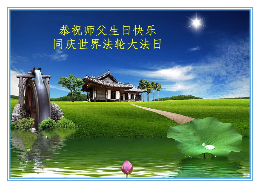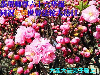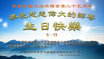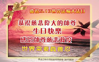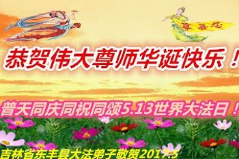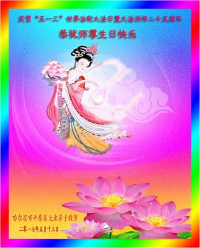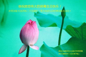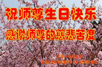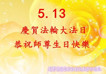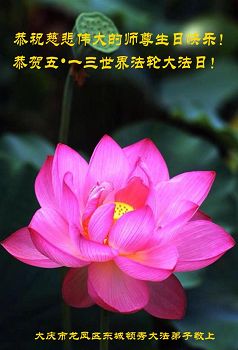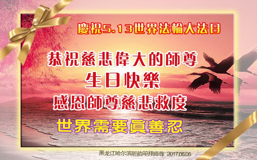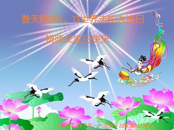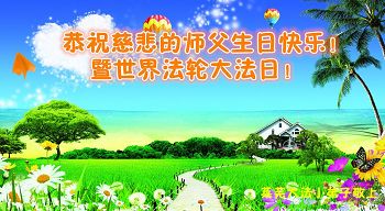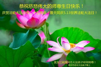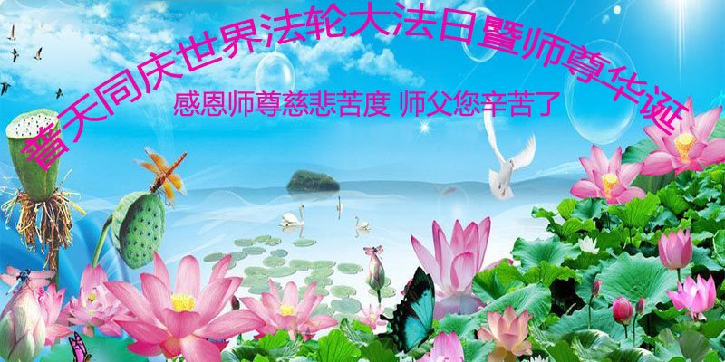 在法轮大法洪传二十五周年和师父华诞来临之际,弟子首先跪拜师父,恭祝师父生日快乐! 庆祝第十八届“五·一三”世界法轮大法日!感恩师父对众苍生的洪恩救度,对弟子的慈悲苦度。