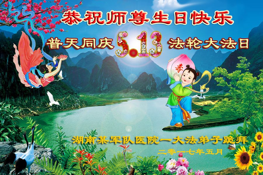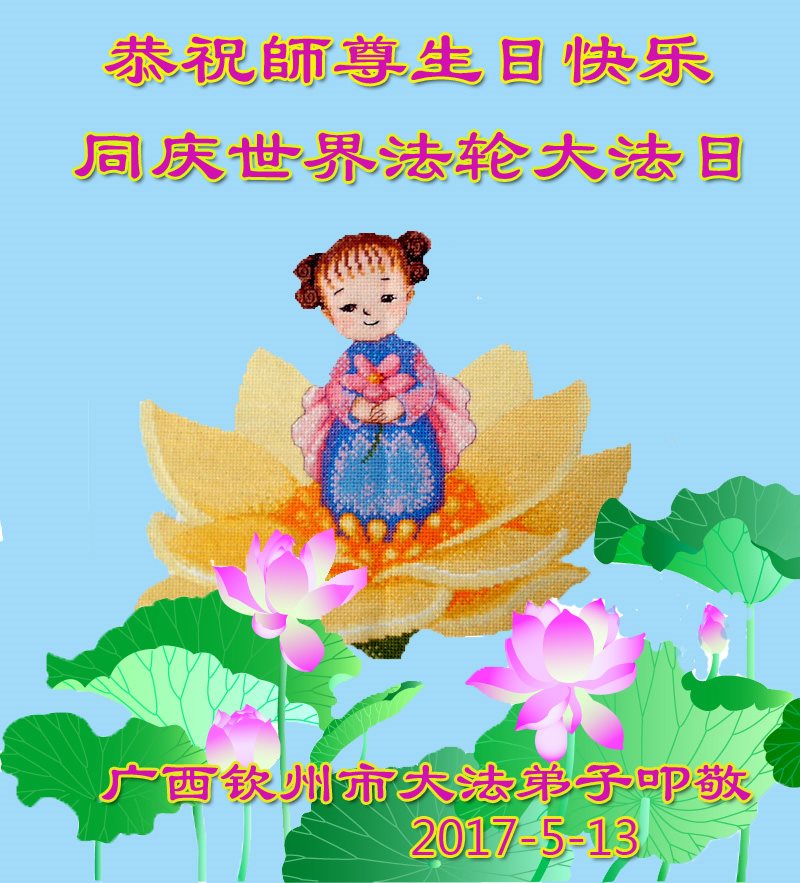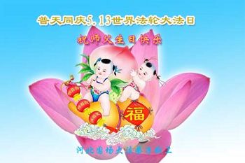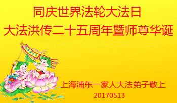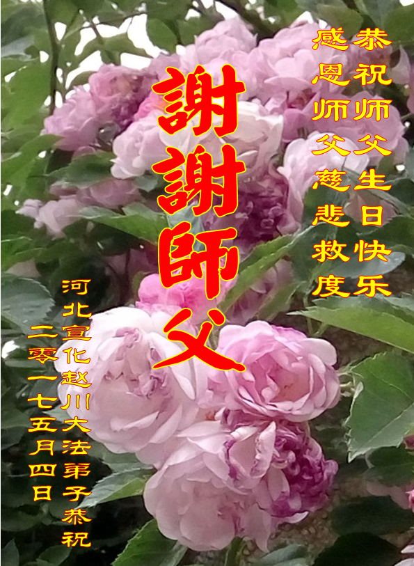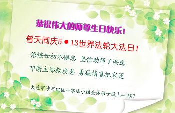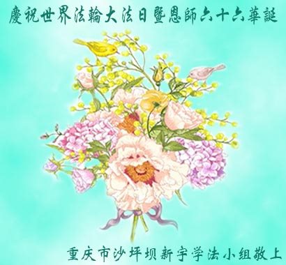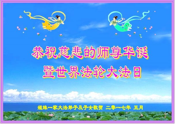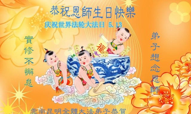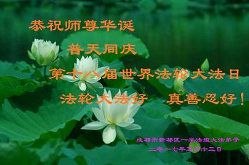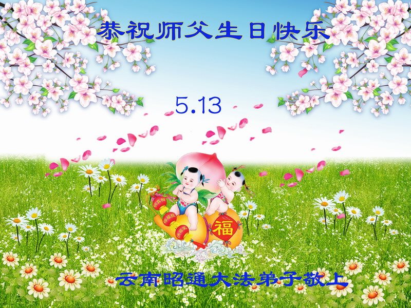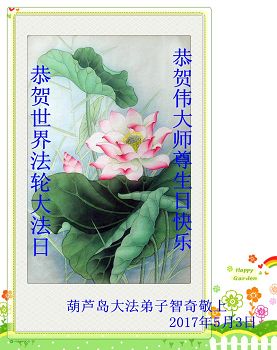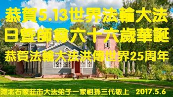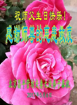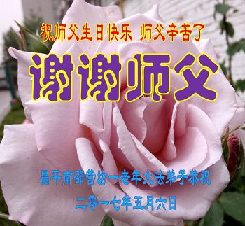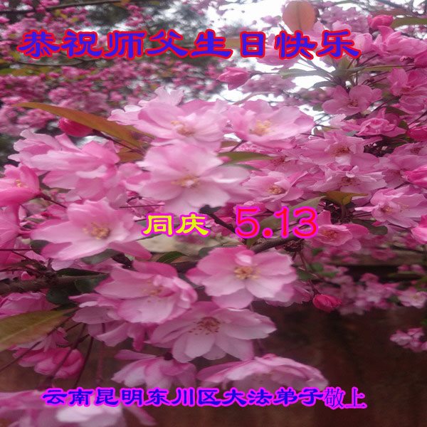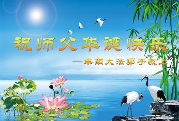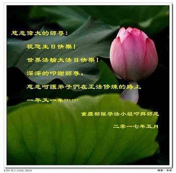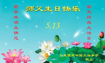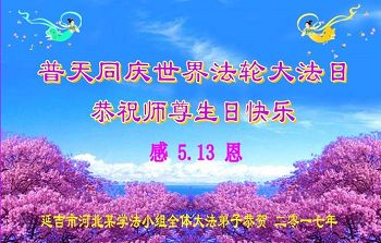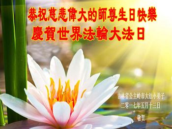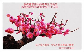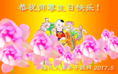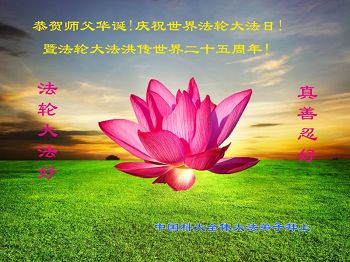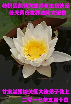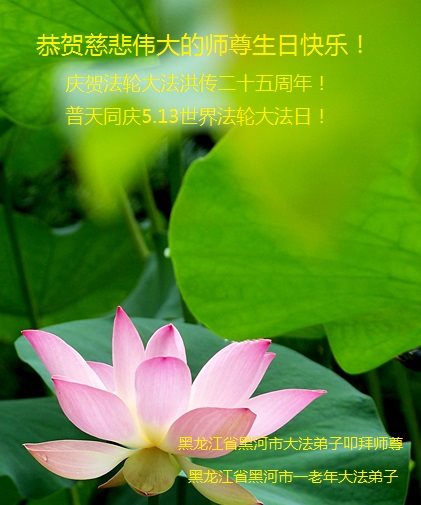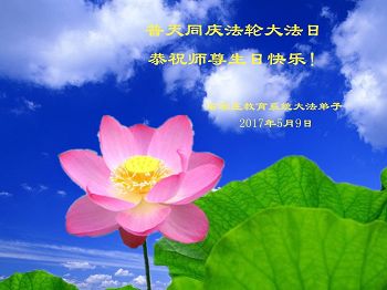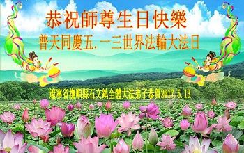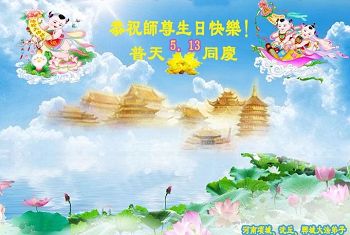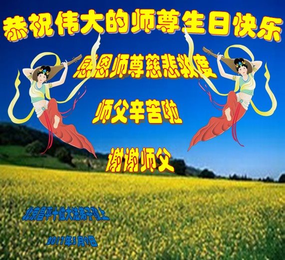 在法轮大法洪传二十五周年和师父华诞来临之际,弟子首先跪拜师父,恭祝师父生日快乐! 庆祝第十八届“五·一三”世界法轮大法日!感恩师父对众苍生的洪恩救度,对弟子的慈悲苦度。