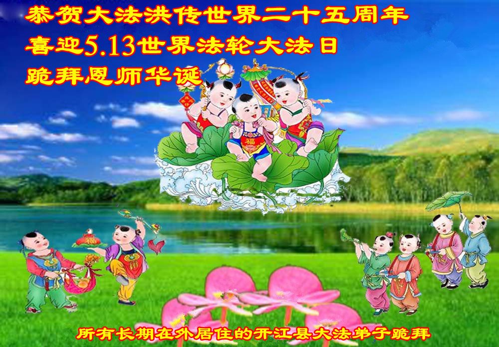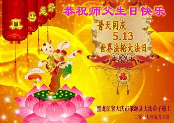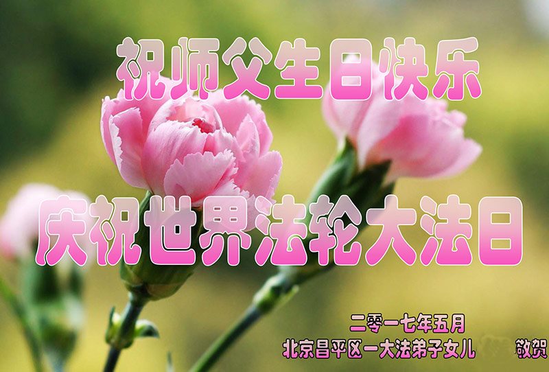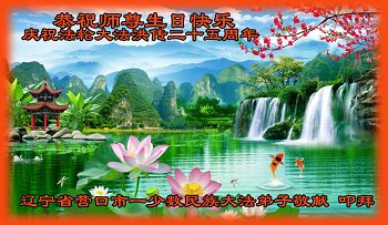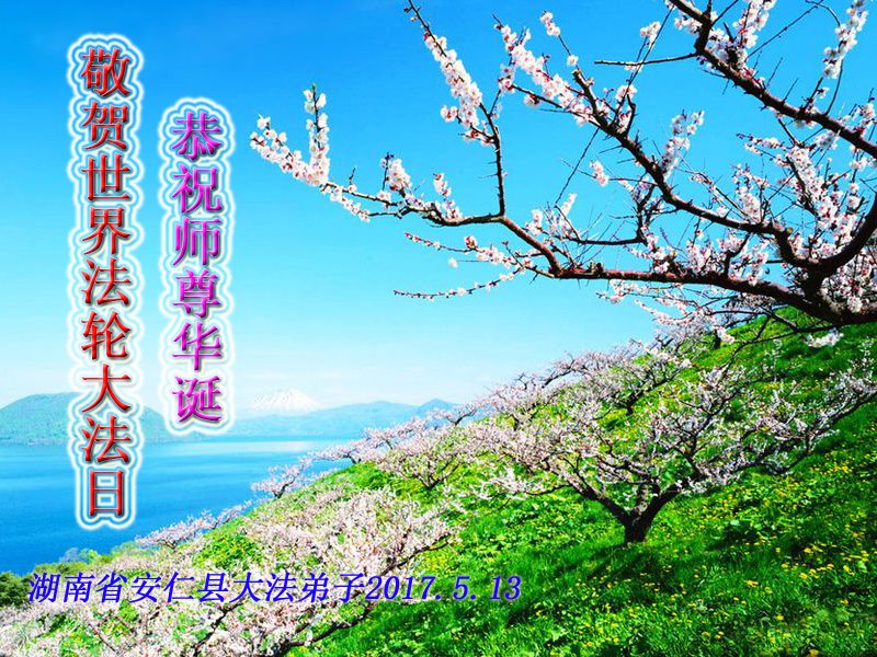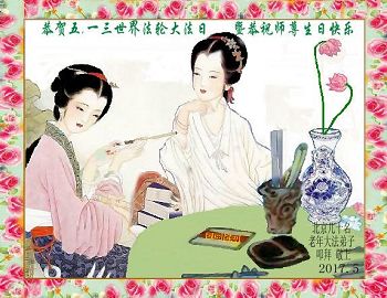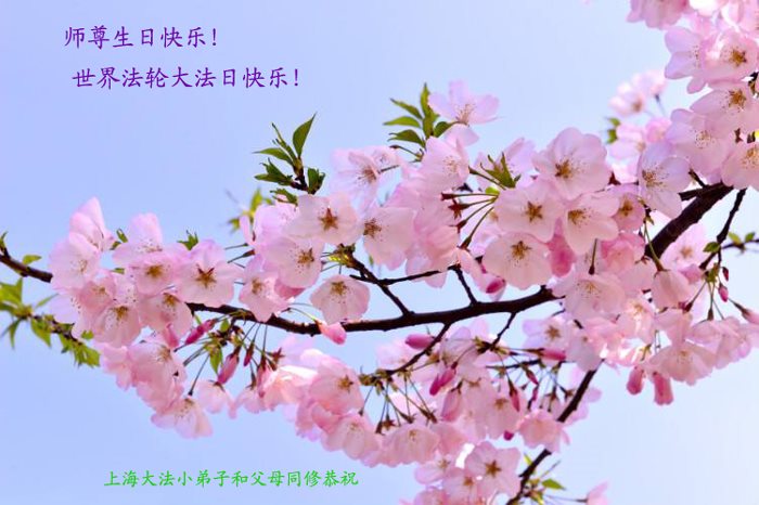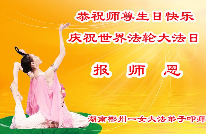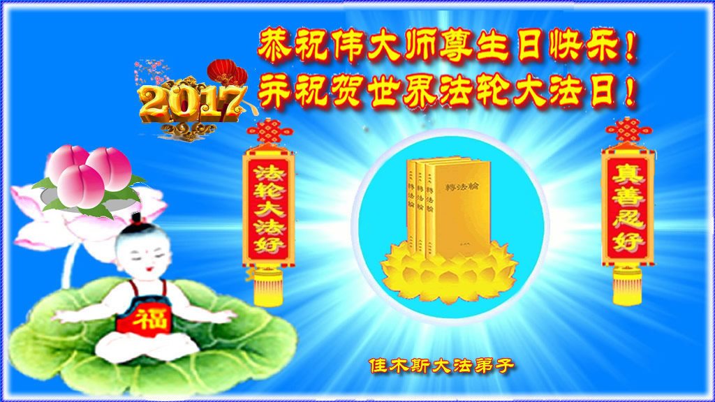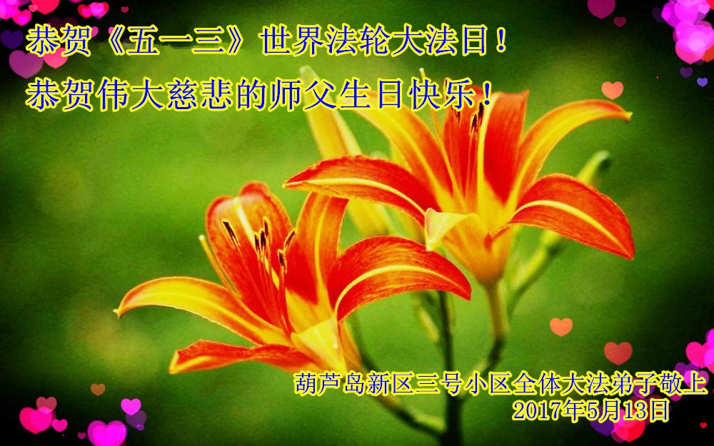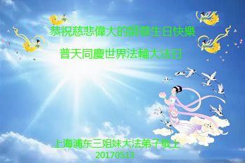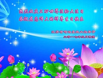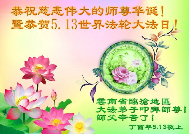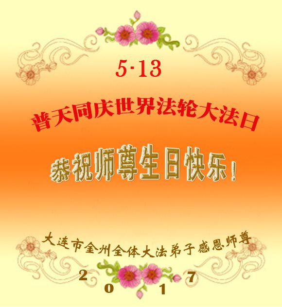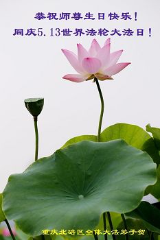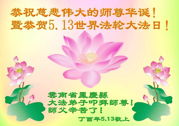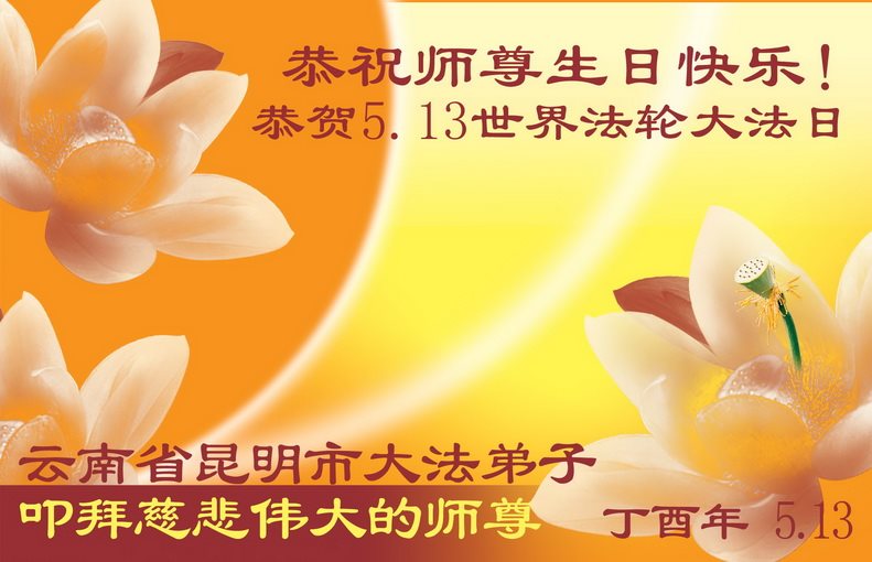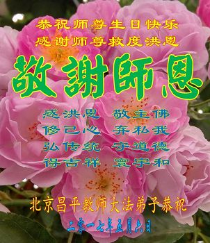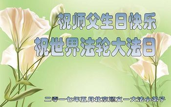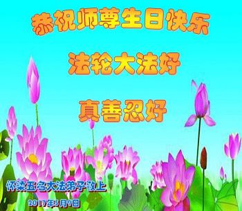 在法轮大法洪传二十五周年和师父华诞来临之际,弟子首先跪拜师父,恭祝师父生日快乐! 庆祝第十八届“五·一三”世界法轮大法日!感恩师父对众苍生的洪恩救度,对弟子的慈悲苦度。