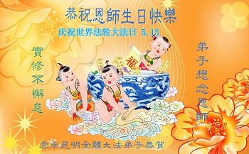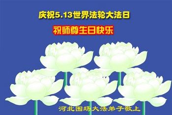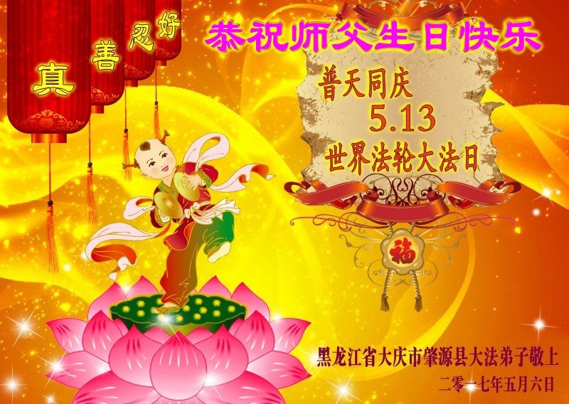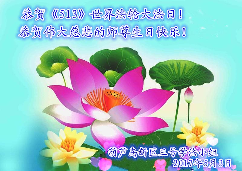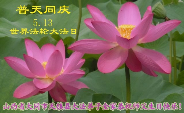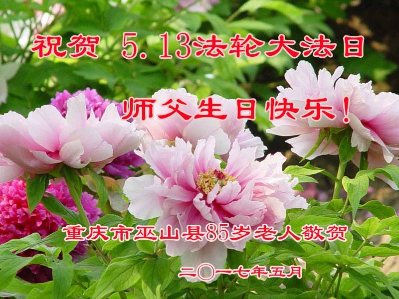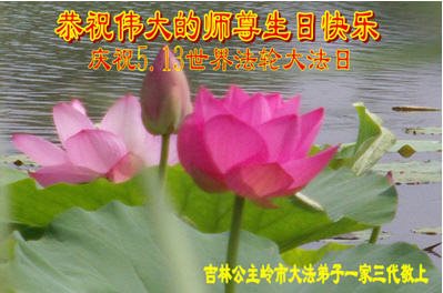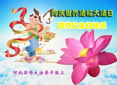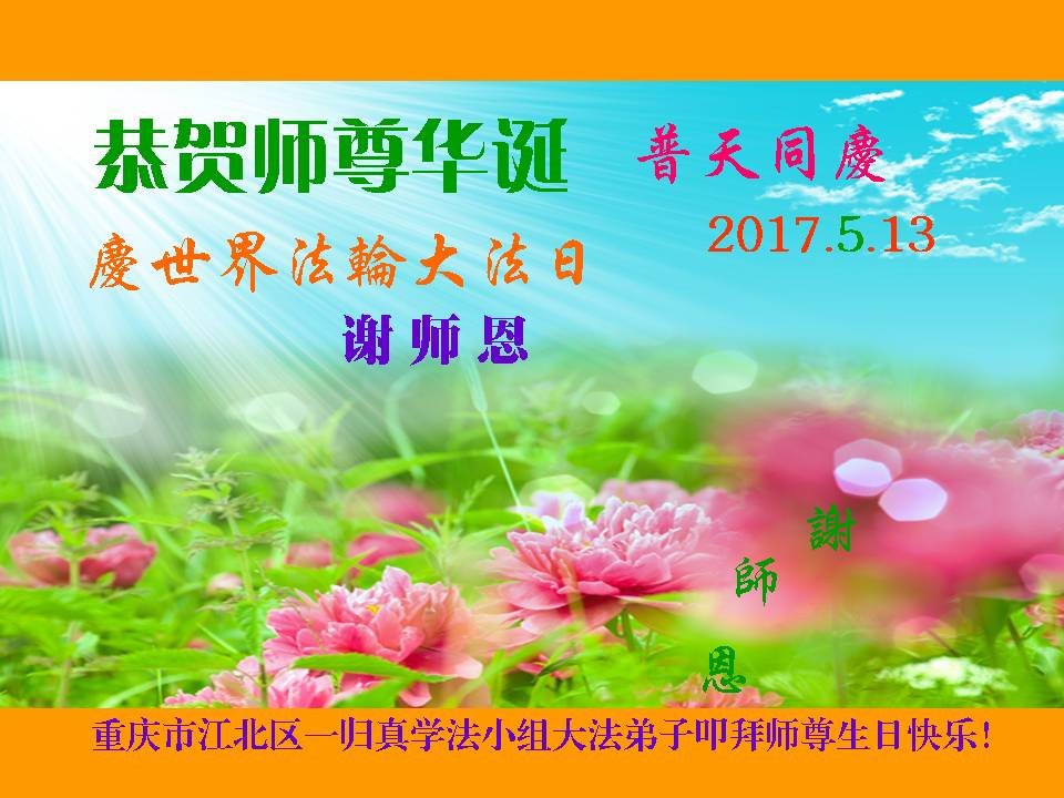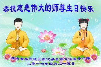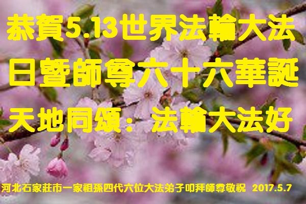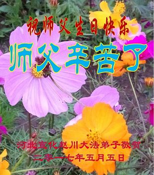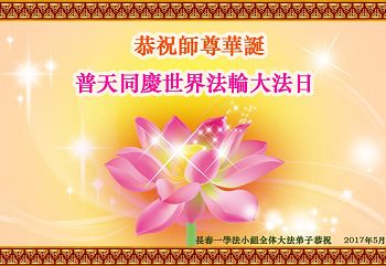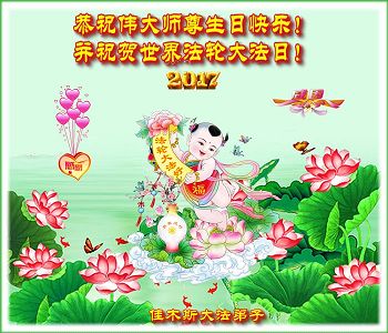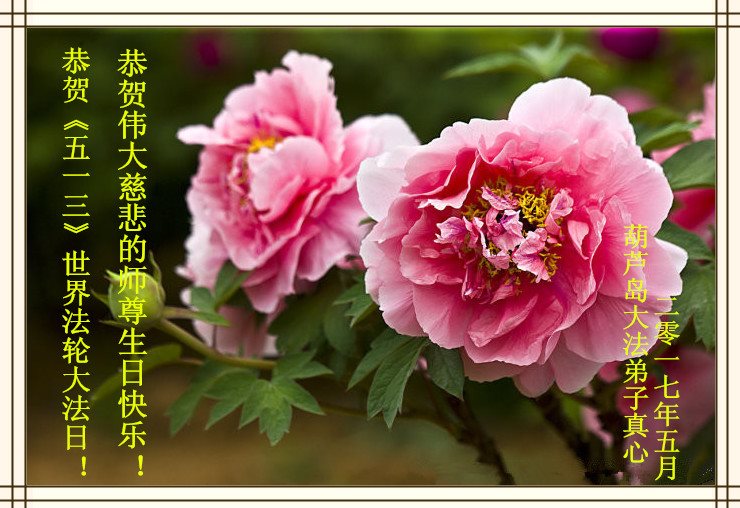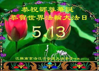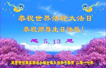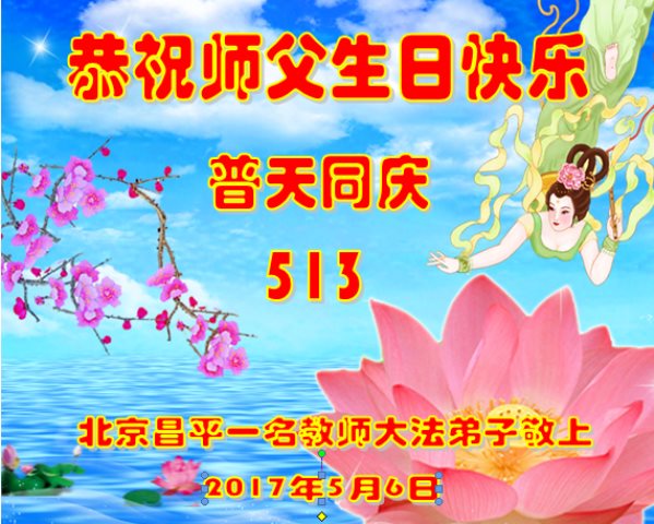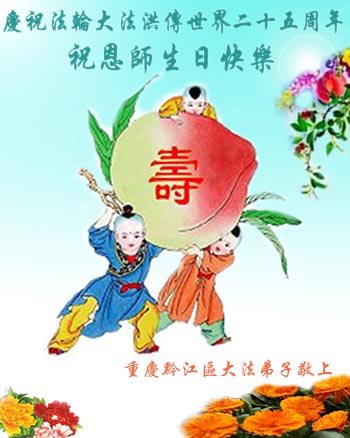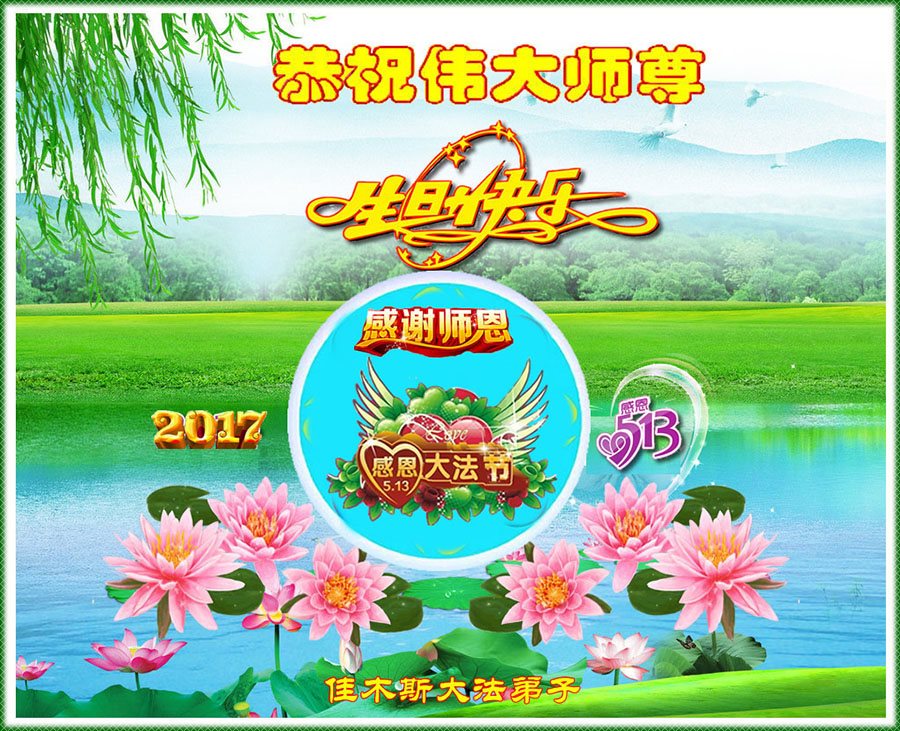在法轮大法洪传二十五周年和师父华诞来临之际,弟子首先跪拜师父,恭祝师父生日快乐! 庆祝第十八届“五·一三”世界法轮大法日!感恩师父对众苍生的洪恩救度,对弟子的慈悲苦度。