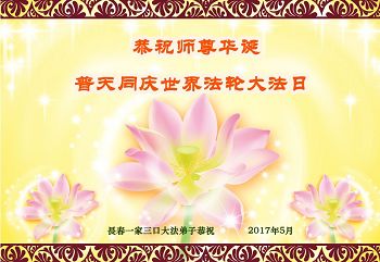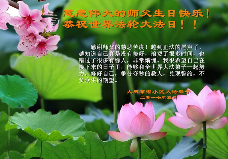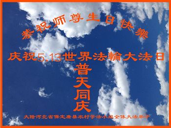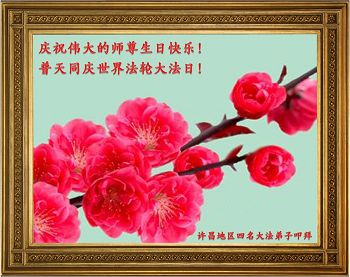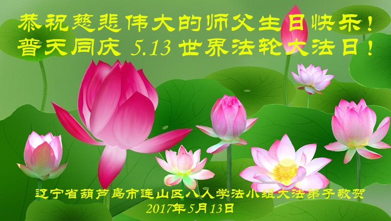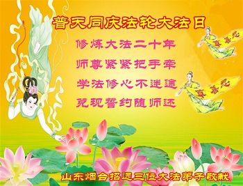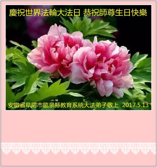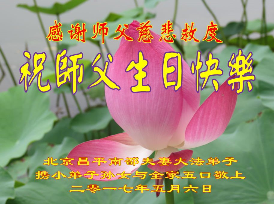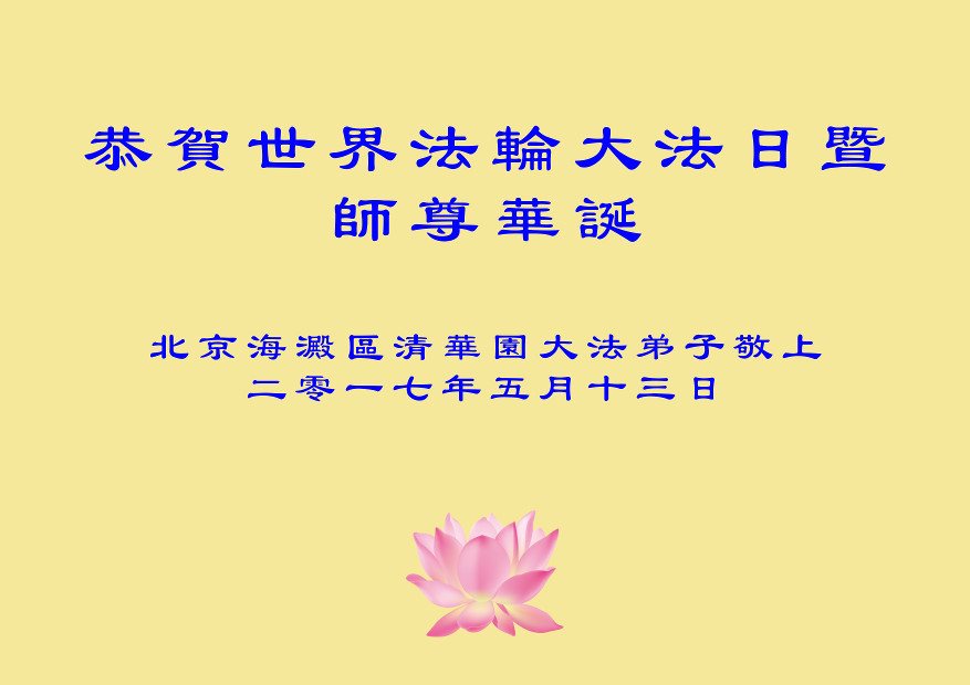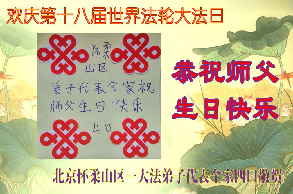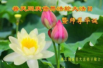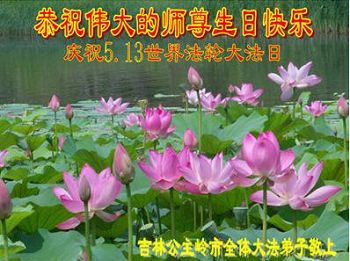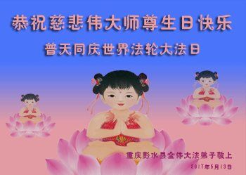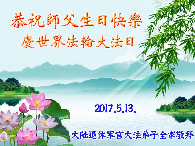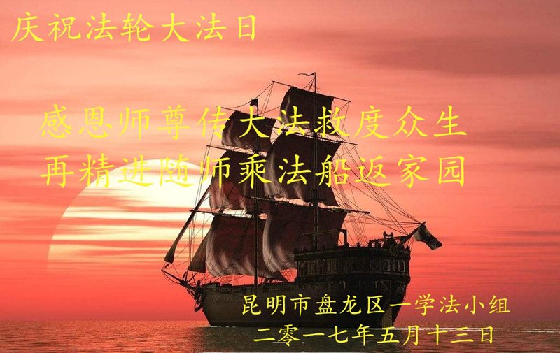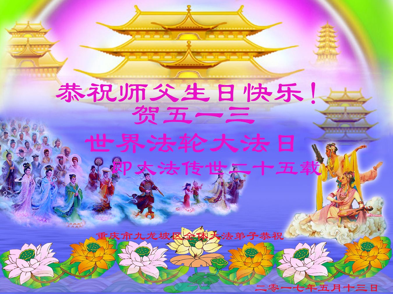 在法轮大法洪传二十五周年和师父华诞来临之际,弟子首先跪拜师父,恭祝师父生日快乐! 庆祝第十八届“五·一三”世界法轮大法日!感恩师父对众苍生的洪恩救度,对弟子的慈悲苦度。