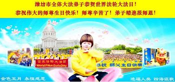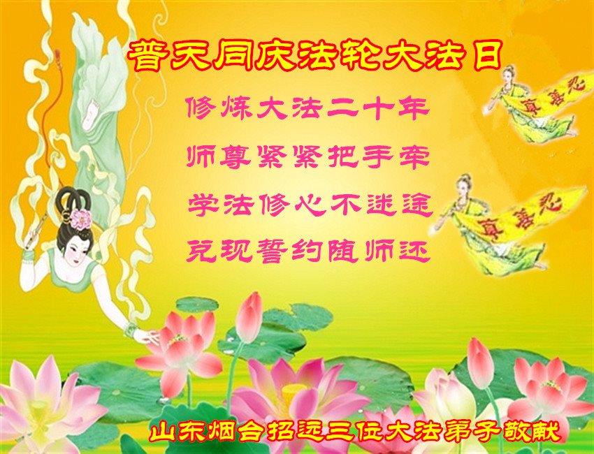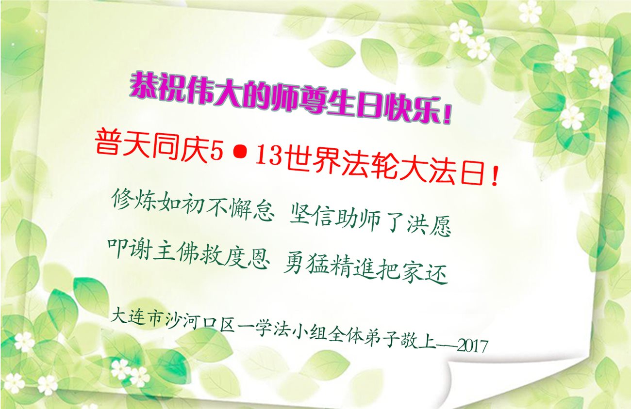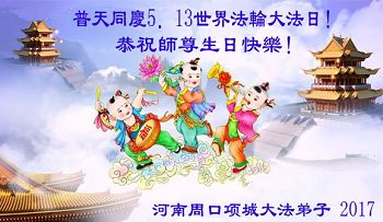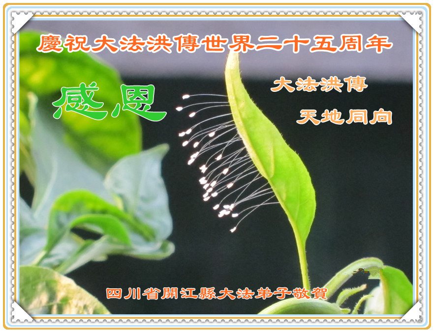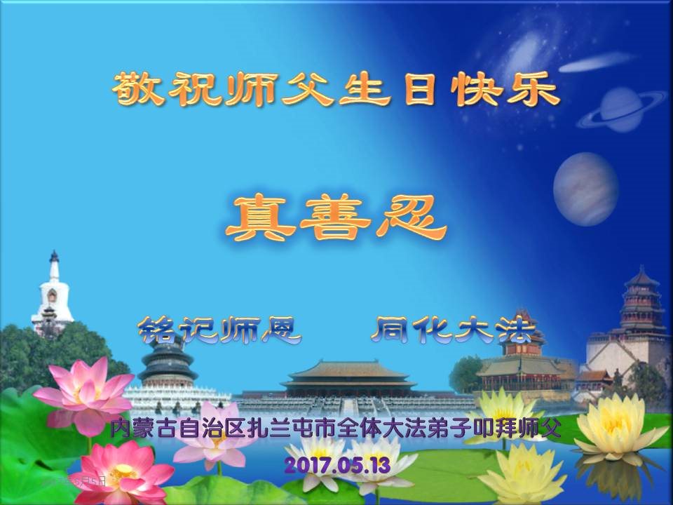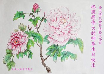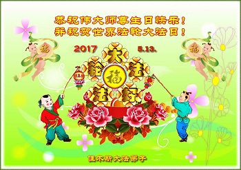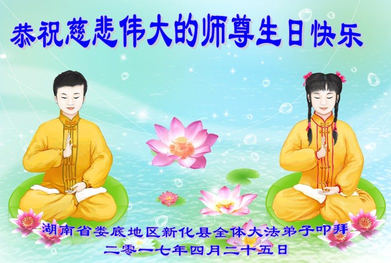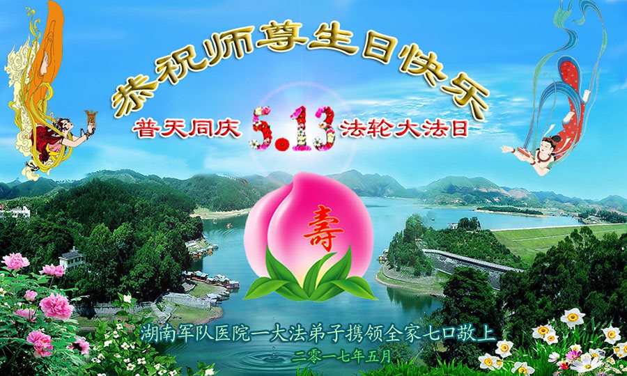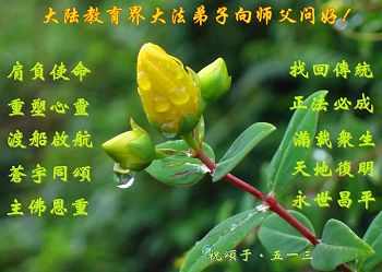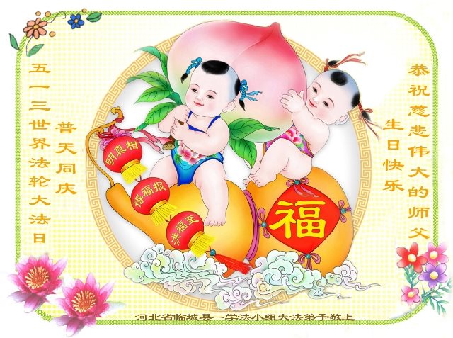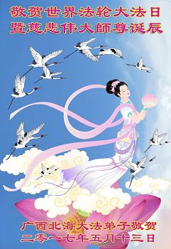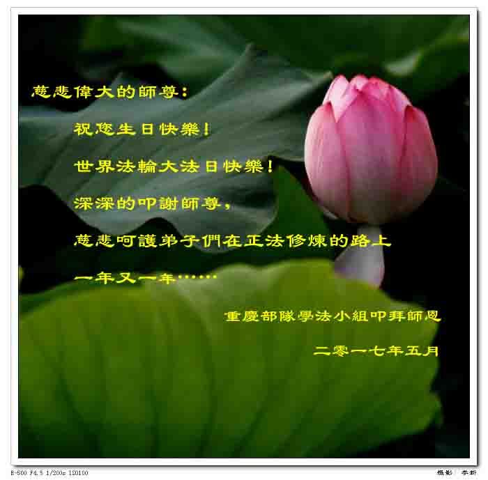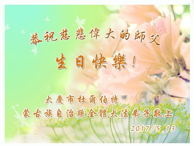 在法轮大法洪传二十五周年和师父华诞来临之际,弟子首先跪拜师父,恭祝师父生日快乐! 庆祝第十八届“五·一三”世界法轮大法日!感恩师父对众苍生的洪恩救度,对弟子的慈悲苦度。