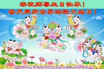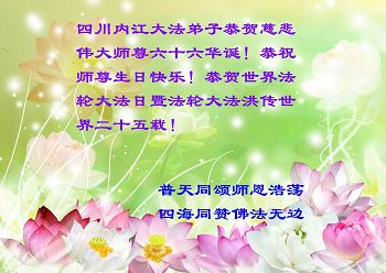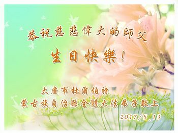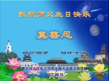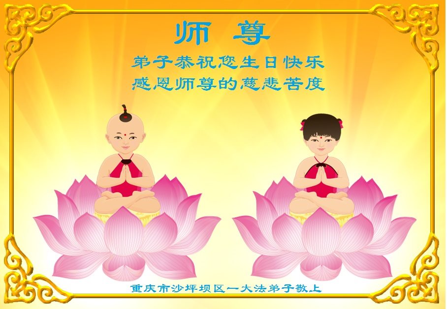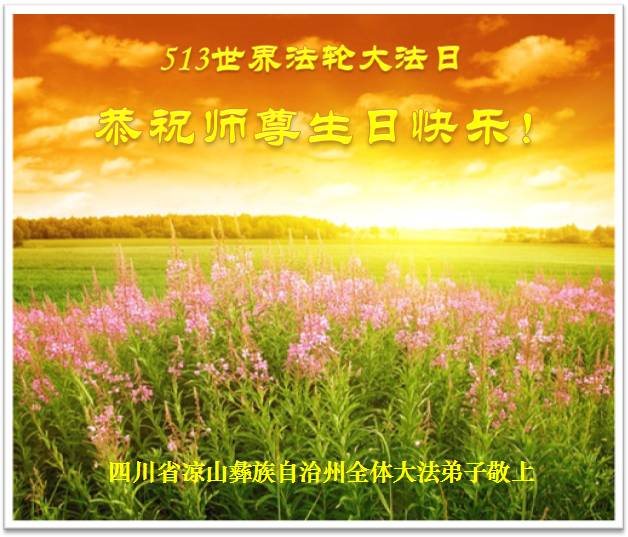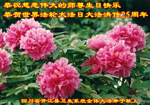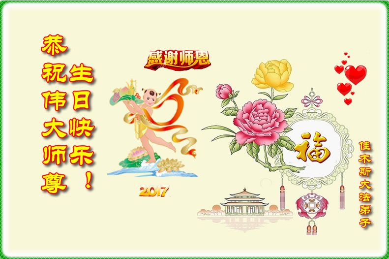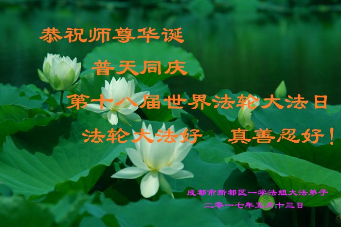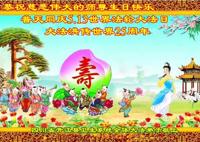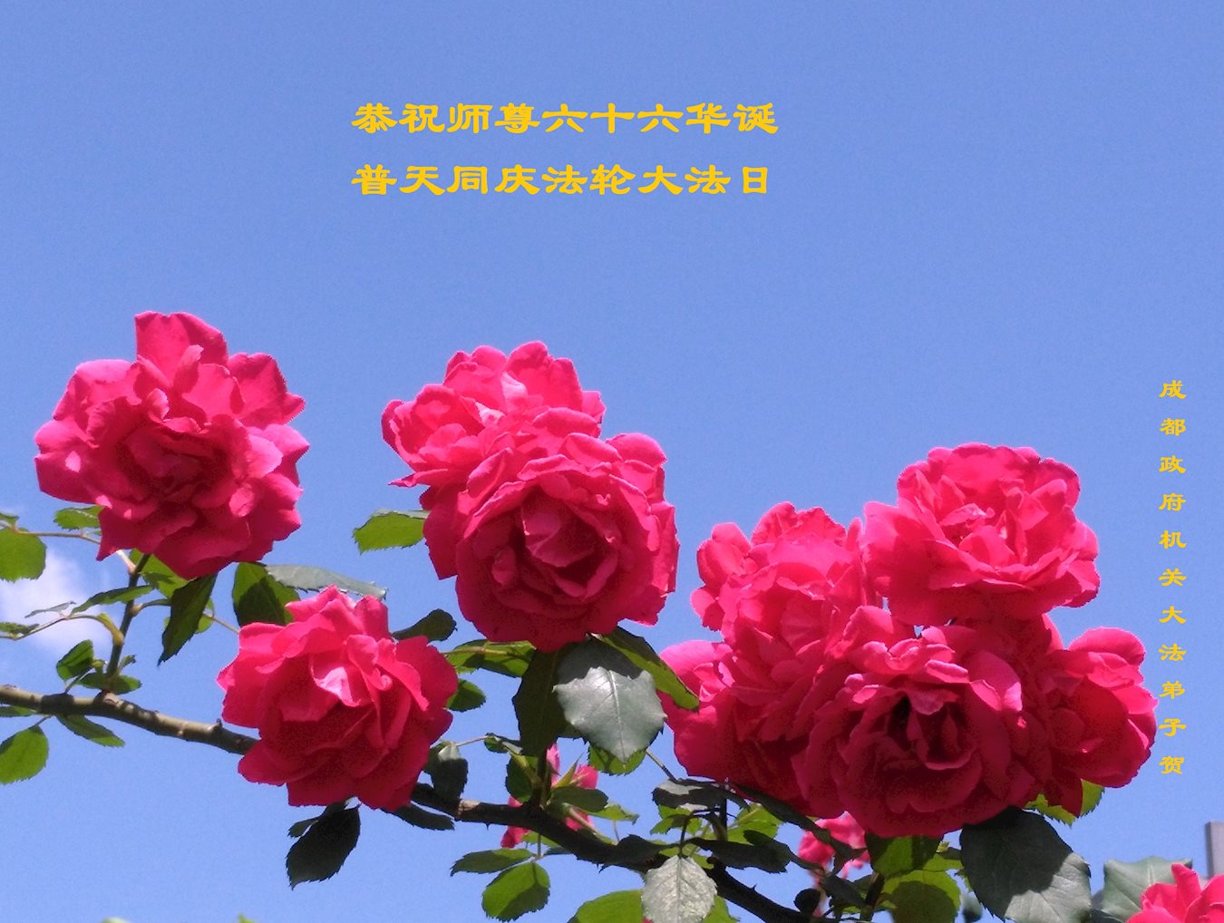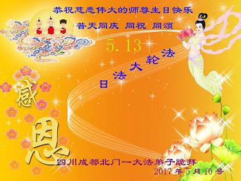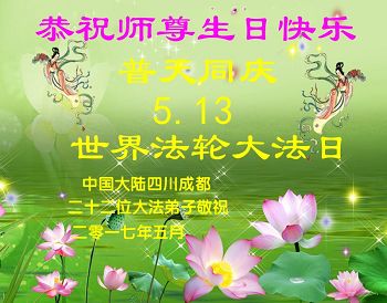 成都政府机关大法弟子恭祝师尊生日快乐!普天同庆法轮大法日!稳健走好最后的正法路。