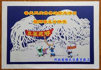 一些已明真相的公检法人员和警察,也与全球大法弟子一起共同欢庆这一伟大的节日!四川省巴中市明白真相的警察在贺信中说:“请李大师放心,我们明白了法轮功真相,我们也看到了每一个大法弟子都是好人,今后一定在我们自己的职权范围内保护大法弟子……”