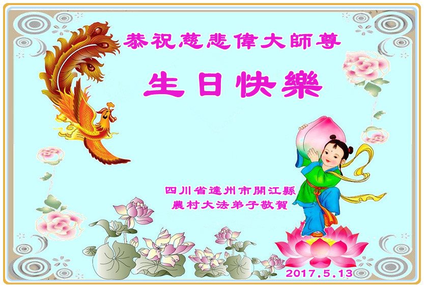 四川省开江县政府部门念“法轮大法好,真善忍好”九字吉言得康复的公务员感谢法轮功李老师!恭祝李老师生日快乐!
