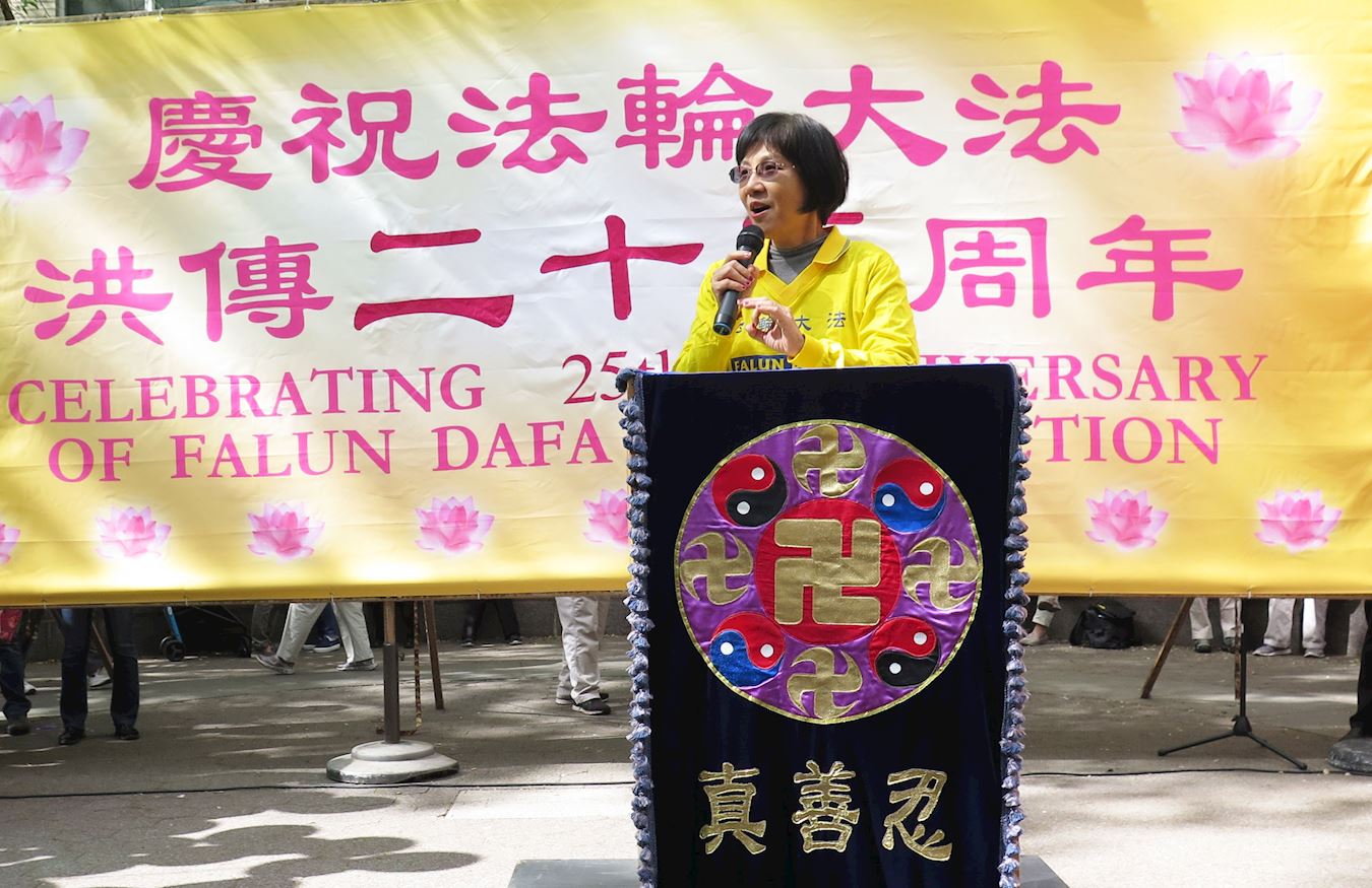 法轮功之友主席阿兰·艾德勒(Alan Adler)先生在集会上说:“在过去的二十五年,法轮大法成为这个星球上最引人注目的精神运动。”“然而,这二十五年不仅仅关于个人修炼,这些(在中国的)修炼者人克服了各种困难,他们冒着极大的危险来反抗(中共)残暴的迫害。过去的十八年铸就了法轮功学员悲天悯人、充满勇气、和平抗争的历史。”