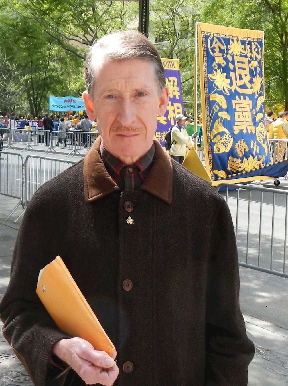 大卫·蓝(David Lane)先生是位天主教徒,他表示今天的活动给他留下非常深刻的印象,他说:“我对在中国遭受迫害的法轮功学员深感同情,我会为法轮功学员祈祷,我希望中国人民能摆脱中共,获得自由,我也会为此祈祷。”他说他身边的朋友们都知道法轮功遭受的迫害。对于强摘人体器官,大卫说,“这种暴行是臭名昭著的野蛮行径,是最恐怖的暴行。中共是罪犯,是大屠杀的凶手。”他还说:“毫无疑问,更多人必须知道这样的暴行在发生。像今天这样的活动的意义弥足珍贵。”