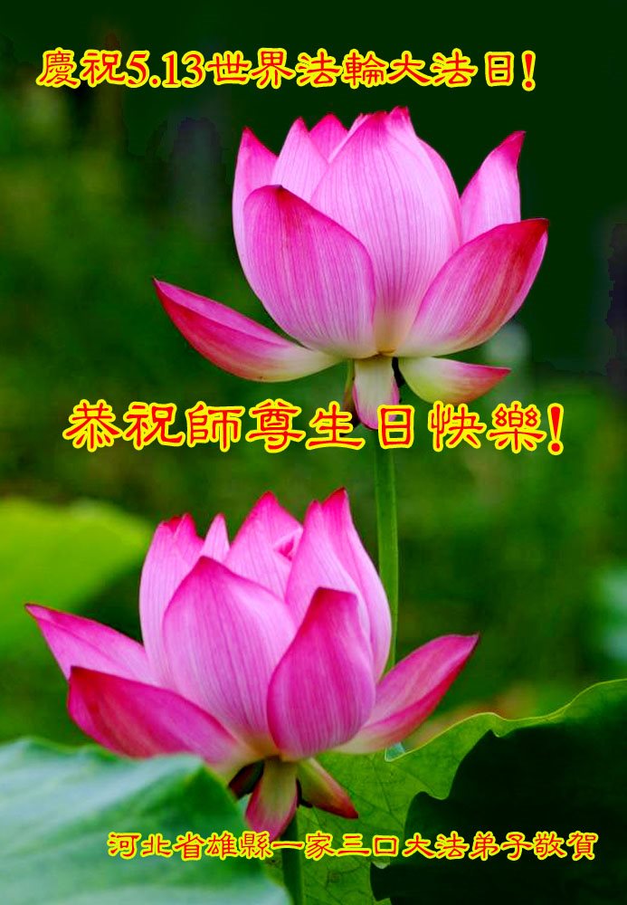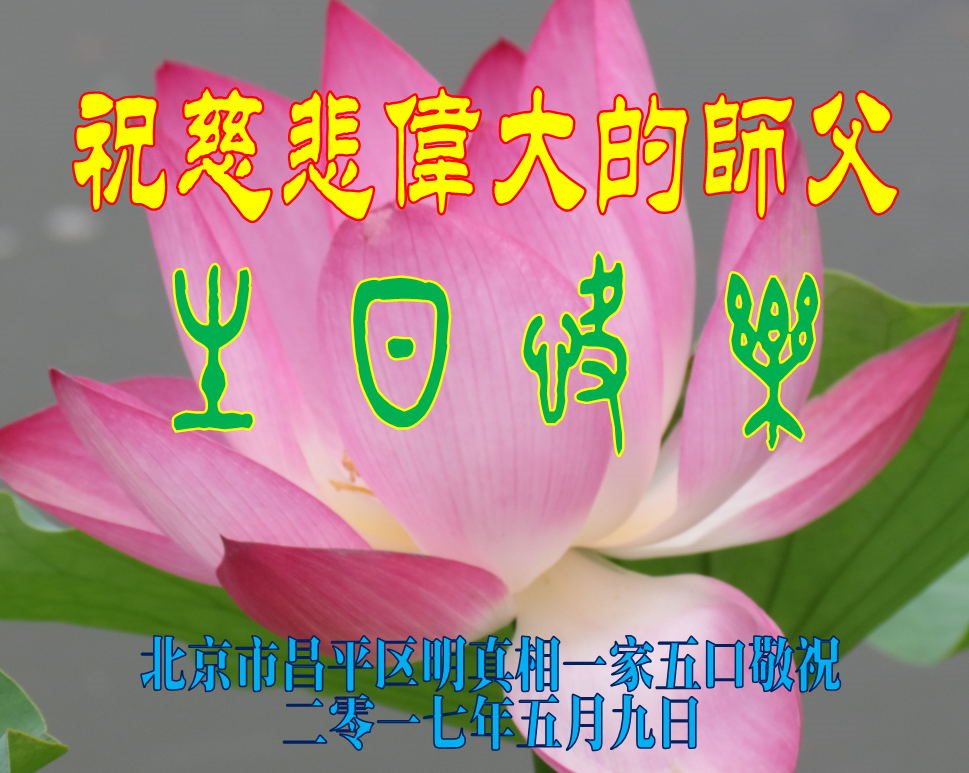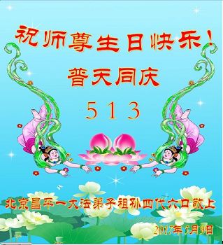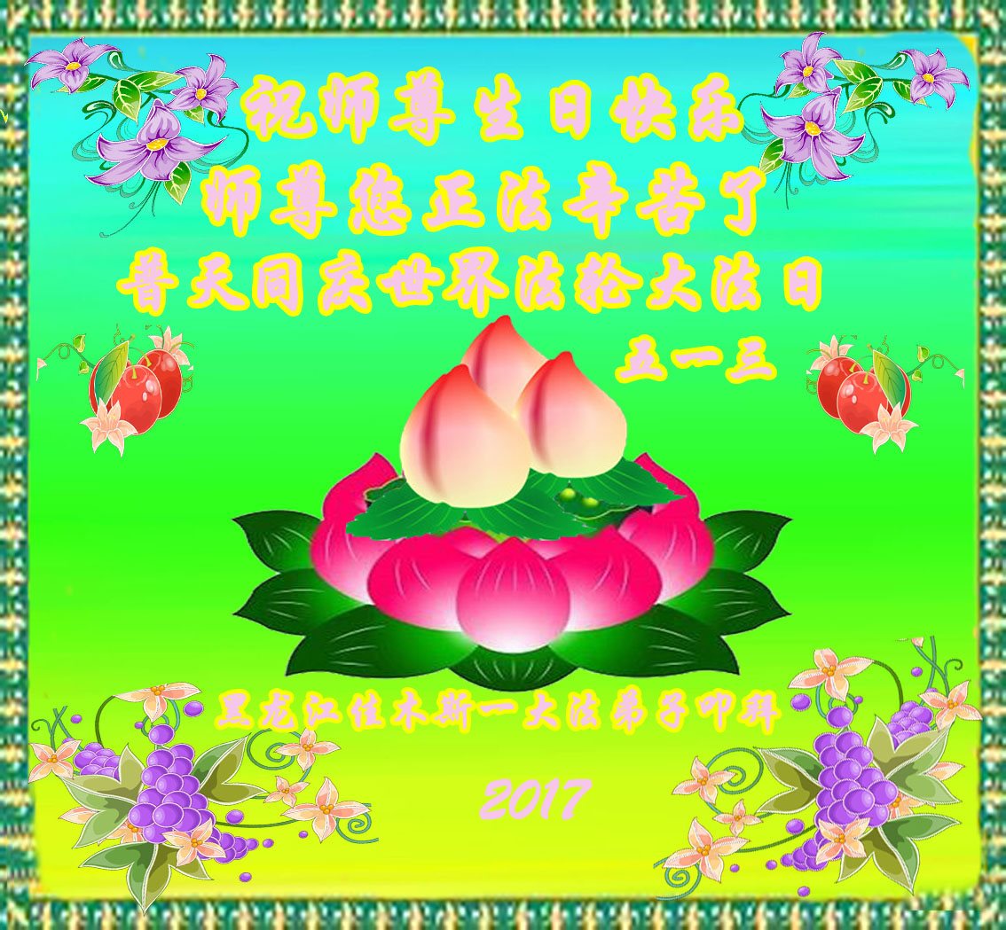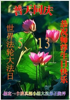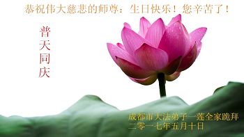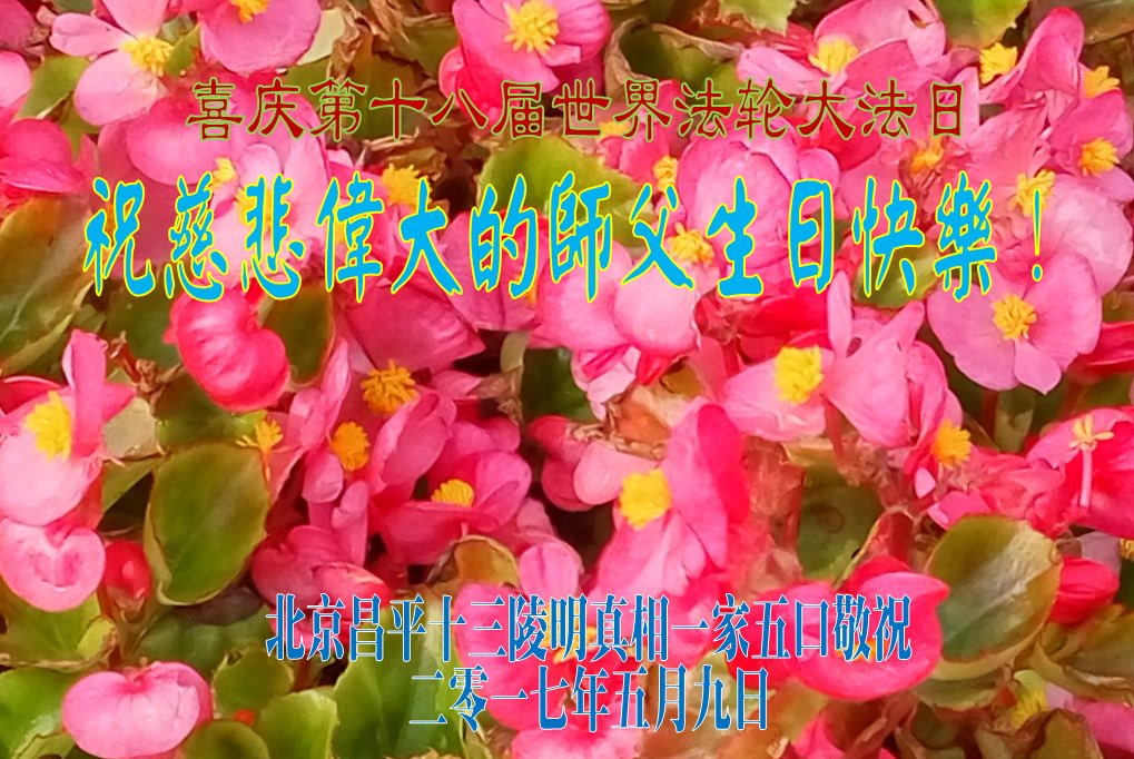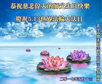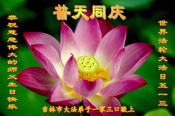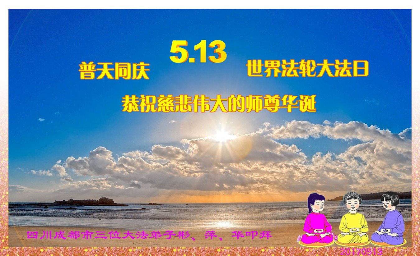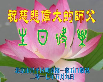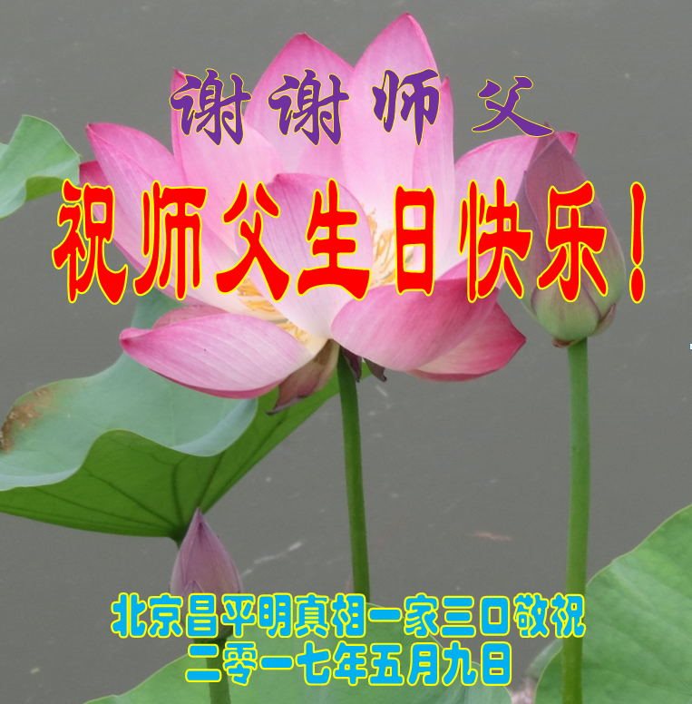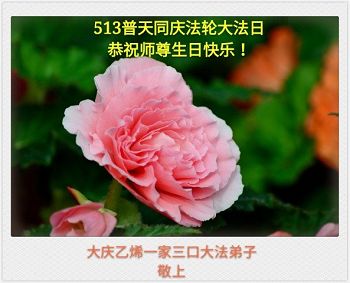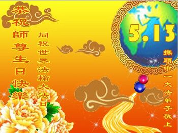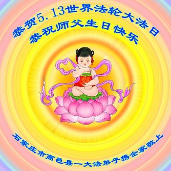 伟大慈悲的师父好。五月十三日是世界法轮大法日,也是师父的诞辰日,弟子与家人恭祝师父生日快乐!