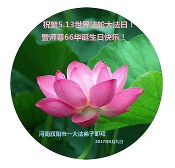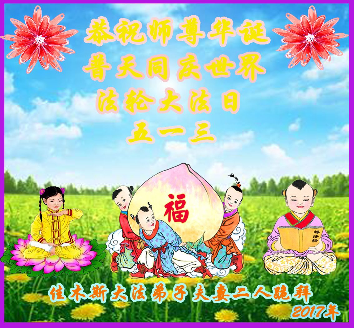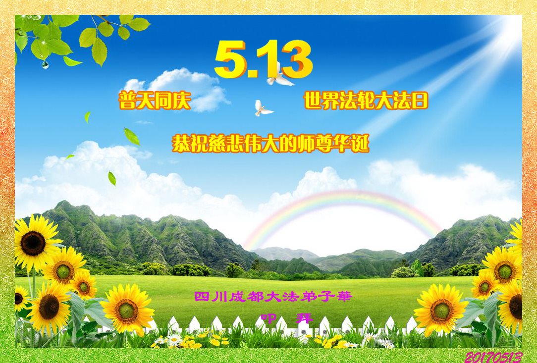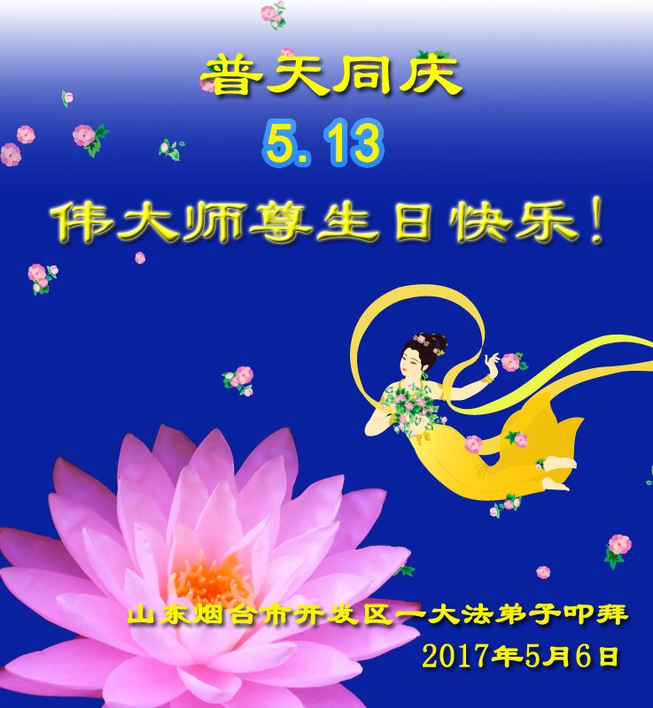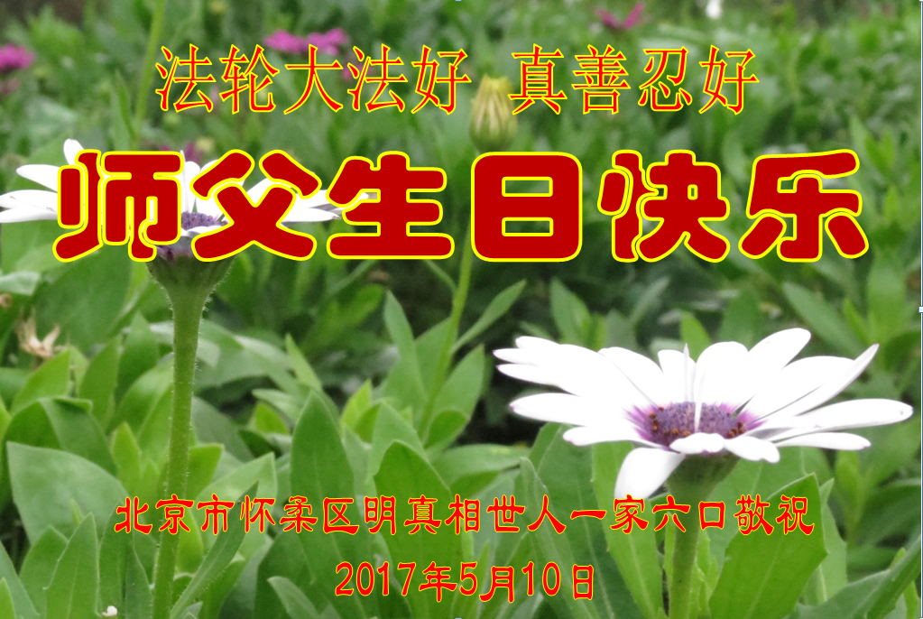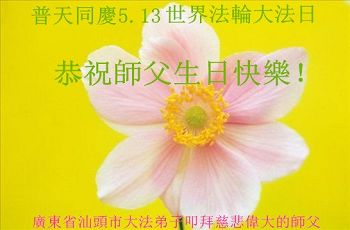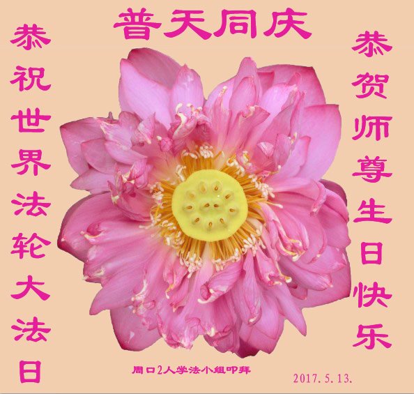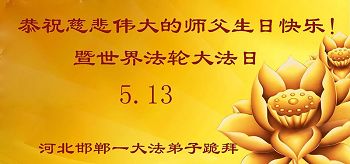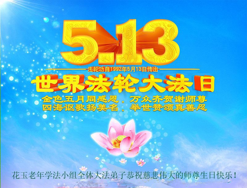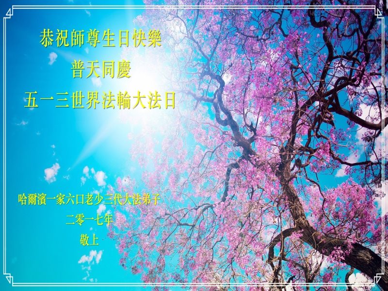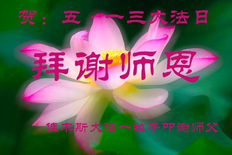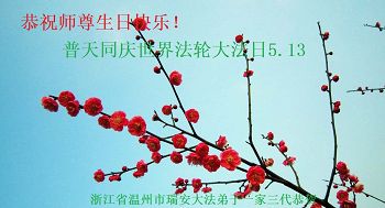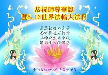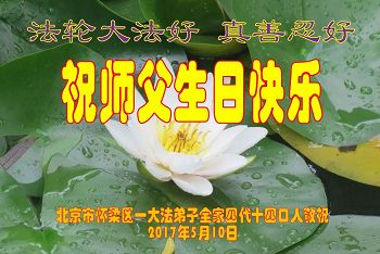 伟大慈悲的师父好。五月十三日是世界法轮大法日,也是师父的诞辰日,弟子与家人恭祝师父生日快乐!