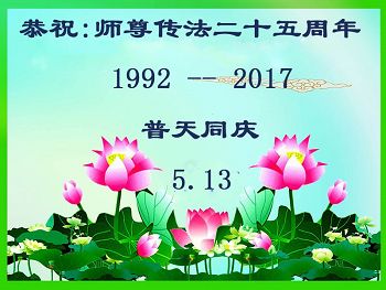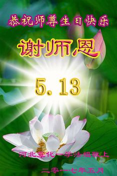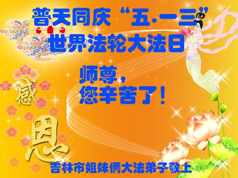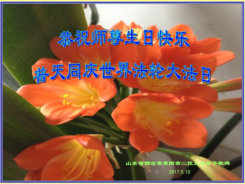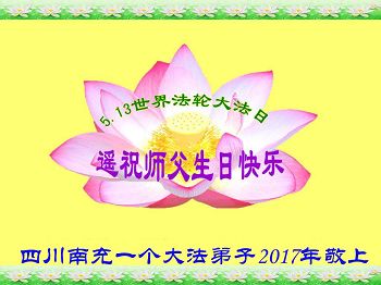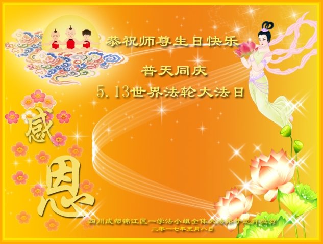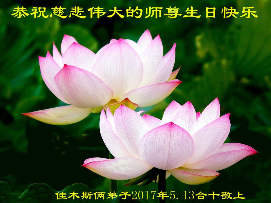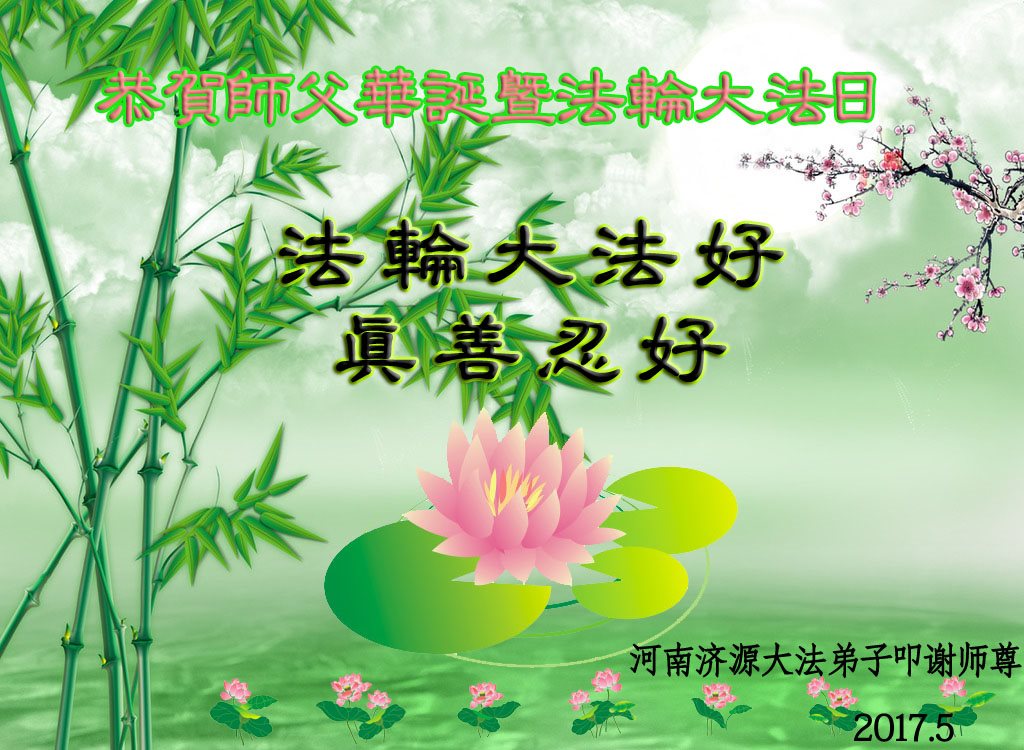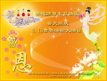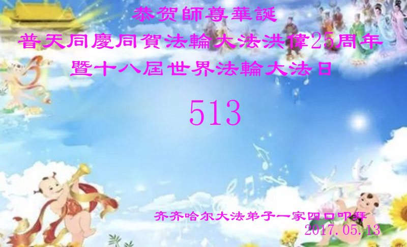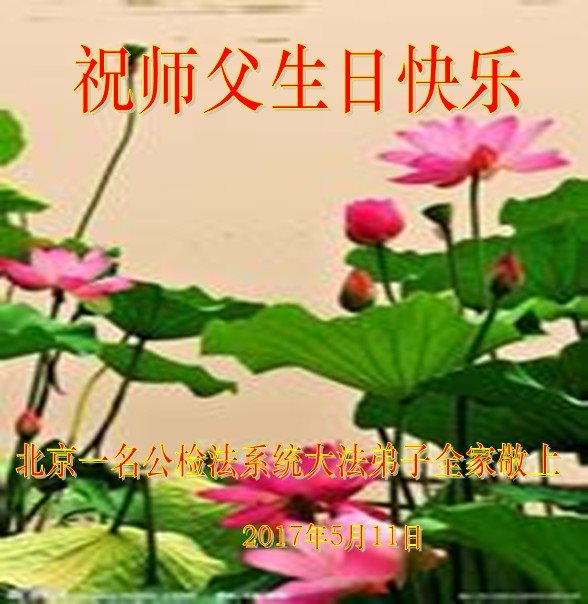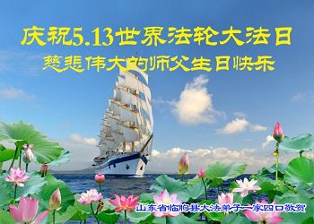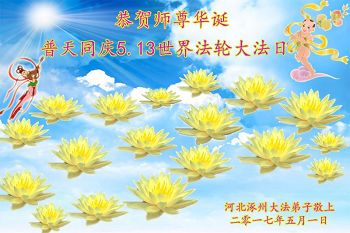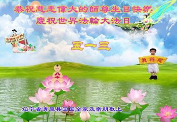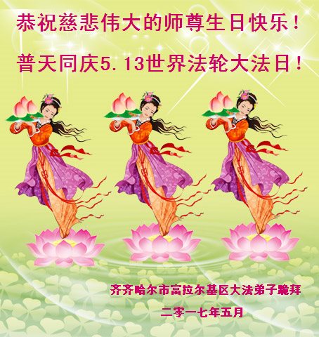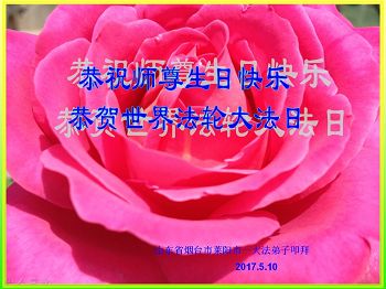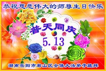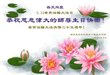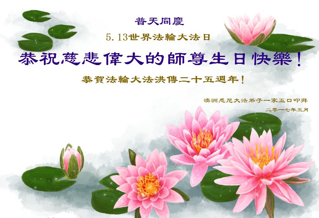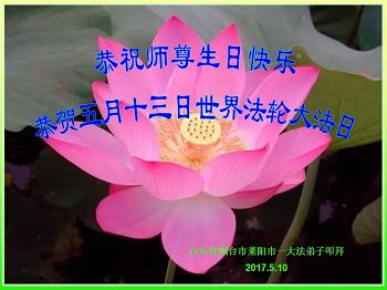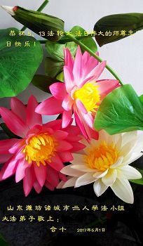 伟大慈悲的师父好。五月十三日是世界法轮大法日,也是师父的诞辰日,弟子与家人恭祝师父生日快乐!