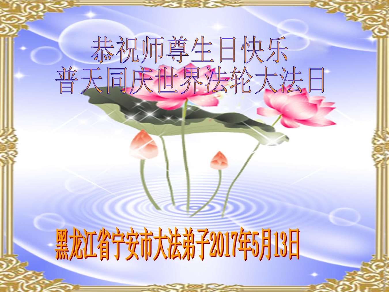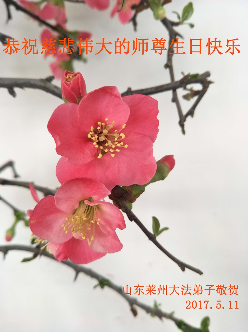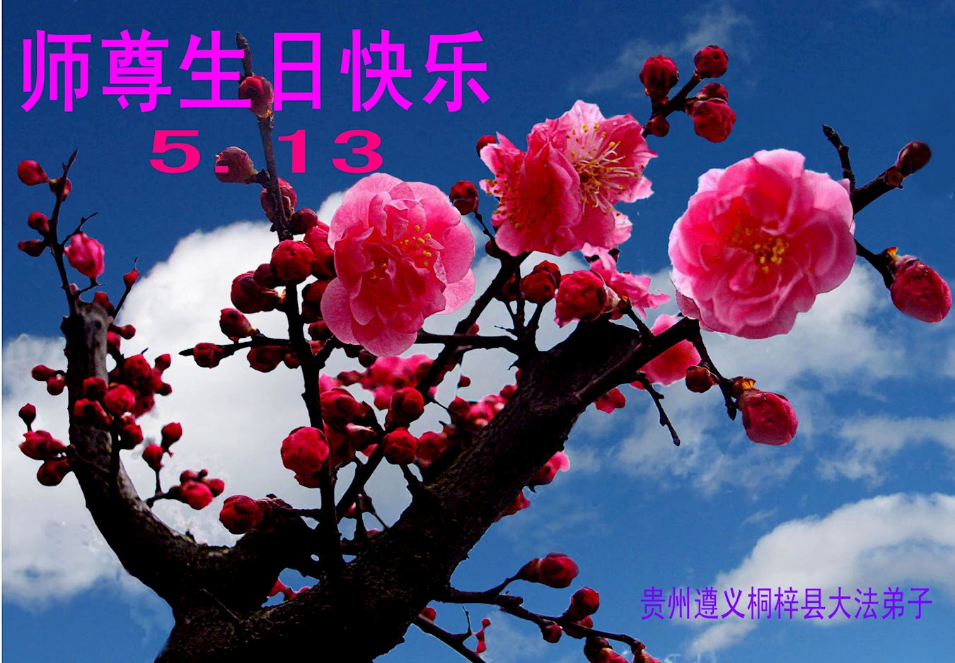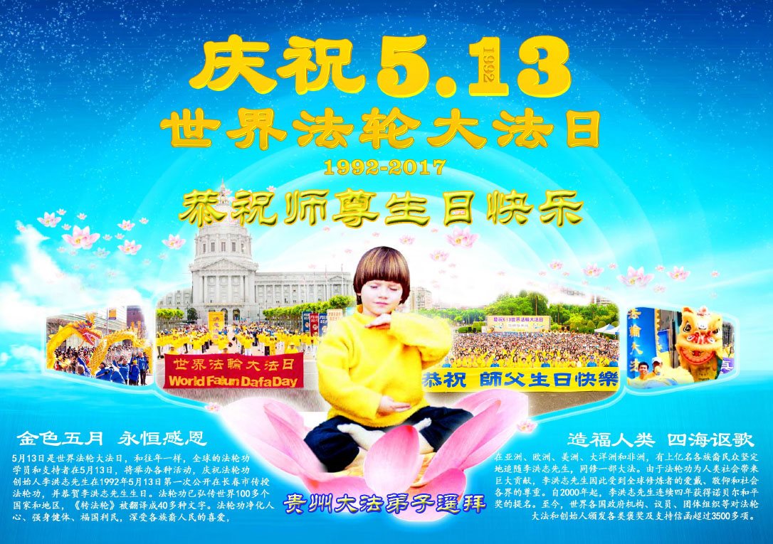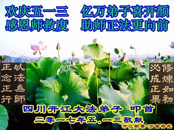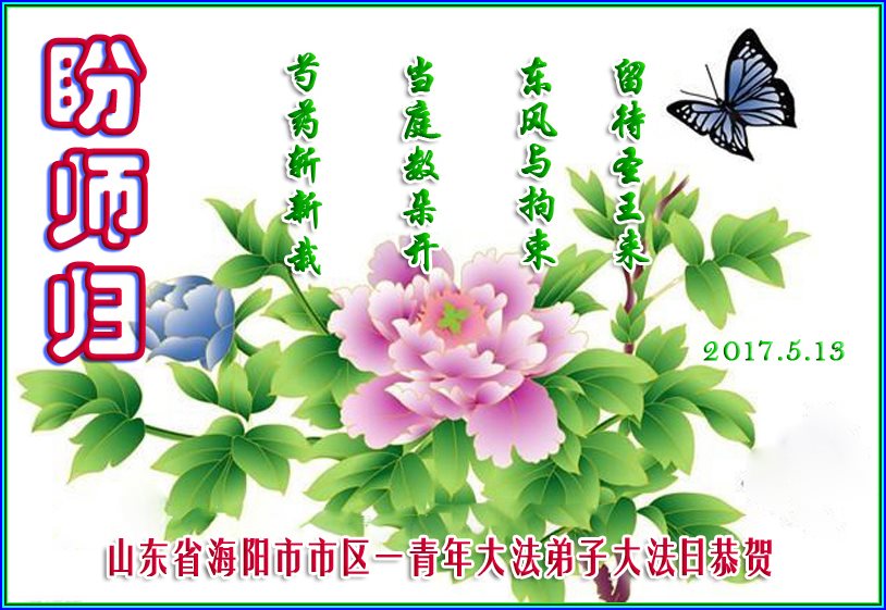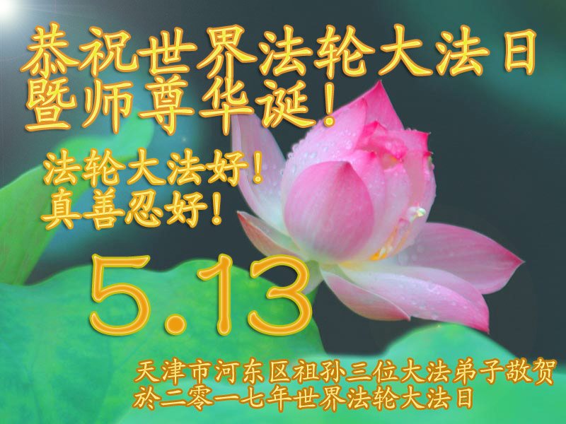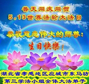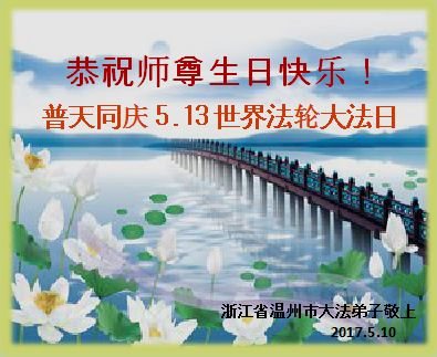 伟大慈悲的师父好。五月十三日是世界法轮大法日,也是师父的诞辰日,弟子与家人恭祝师父生日快乐!