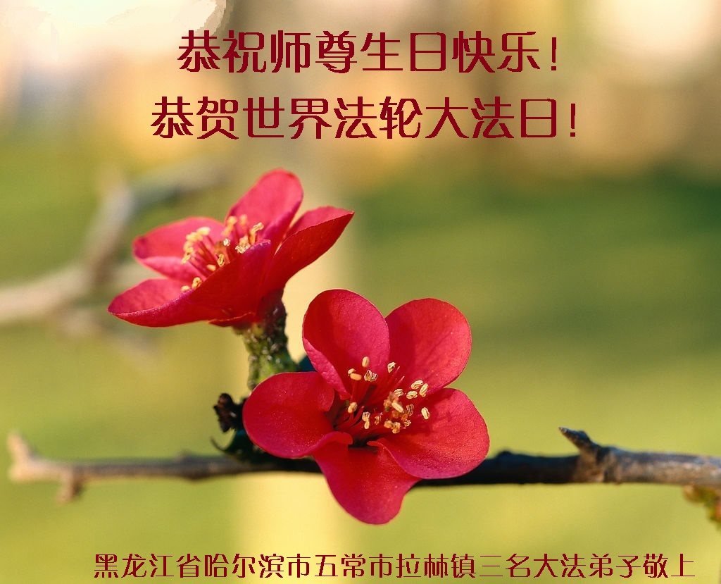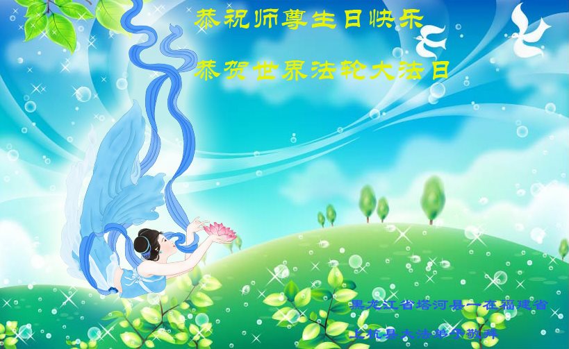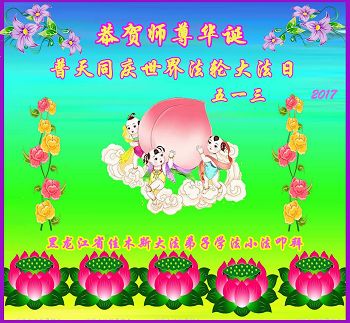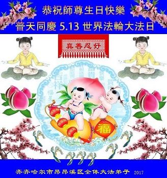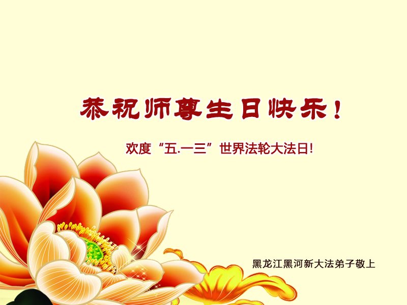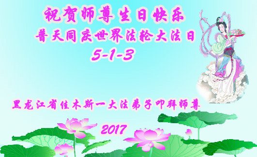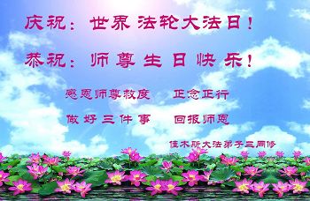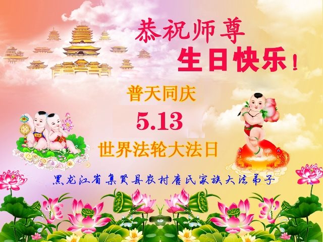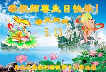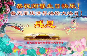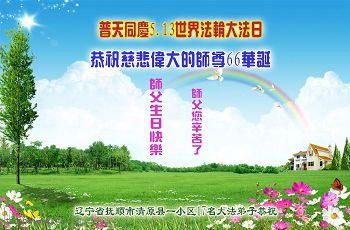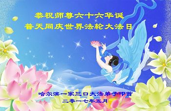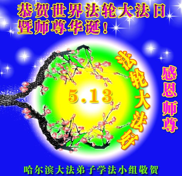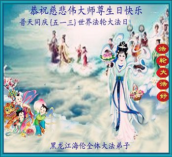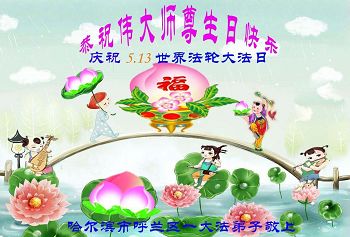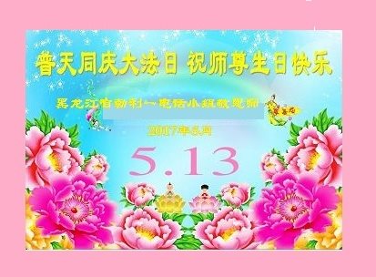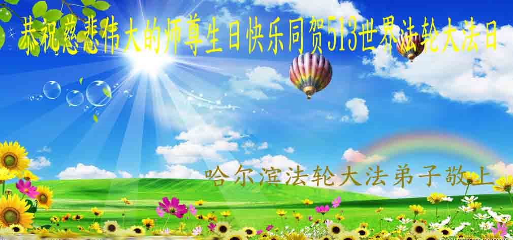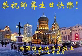黑龙江省哈尔滨市一位明真相的世人恭祝李大师六十六华诞!恭贺世界法轮大法日!