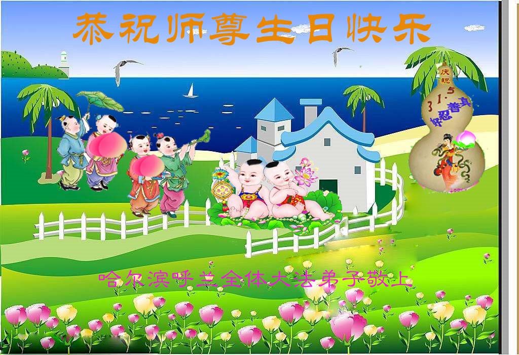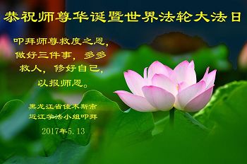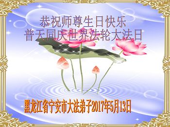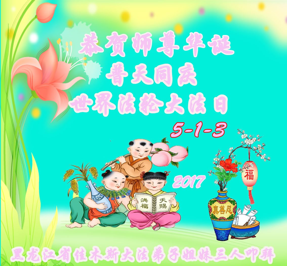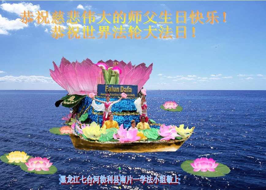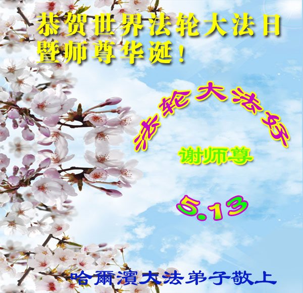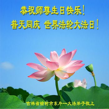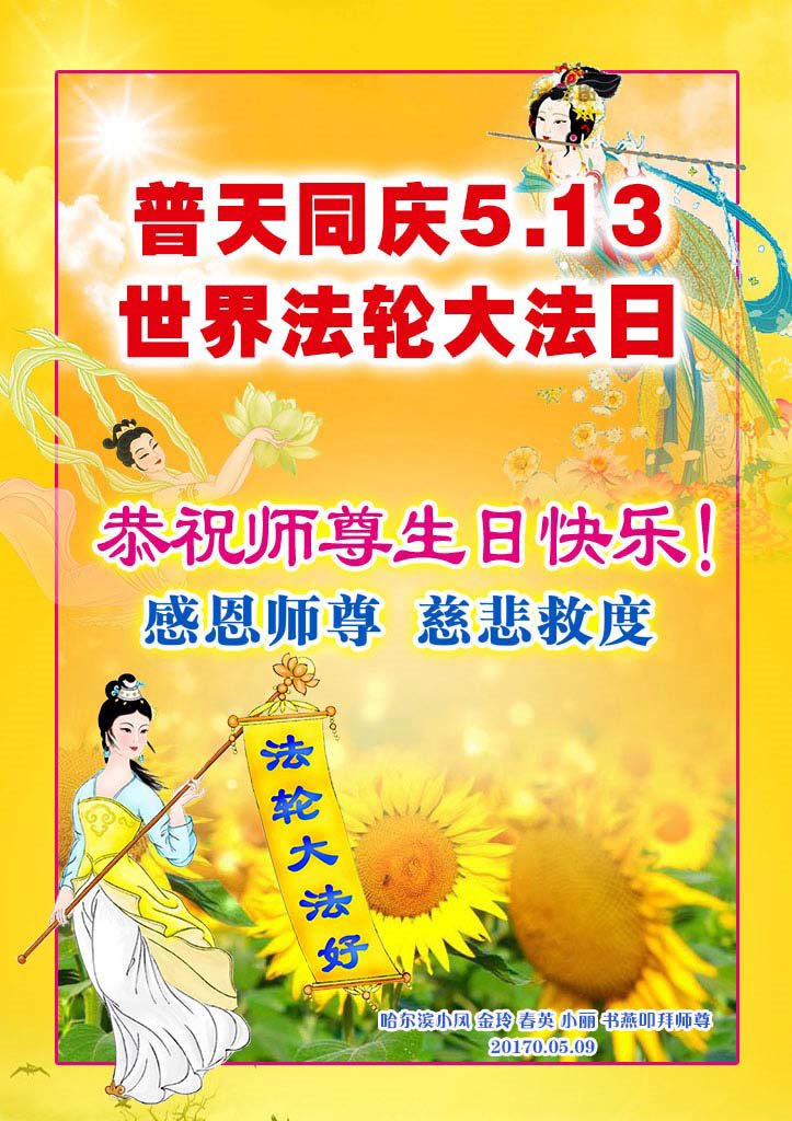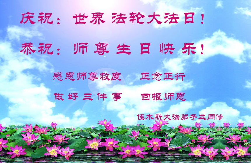 黑龙江省哈尔滨市一位明真相的世人恭祝李大师六十六华诞!恭贺世界法轮大法日!