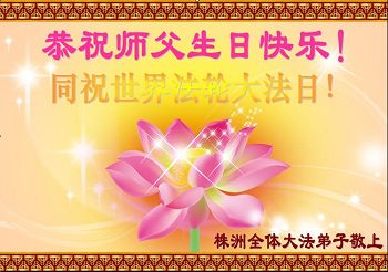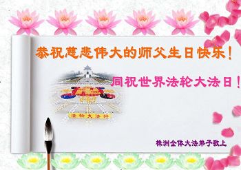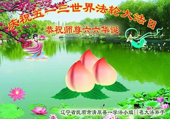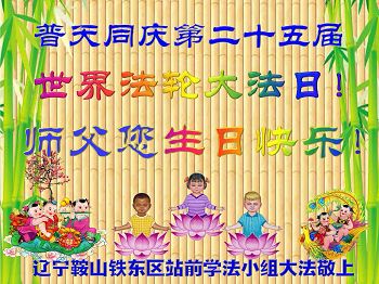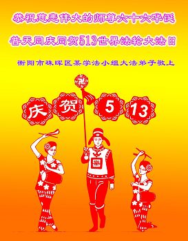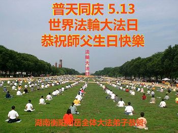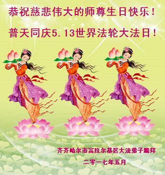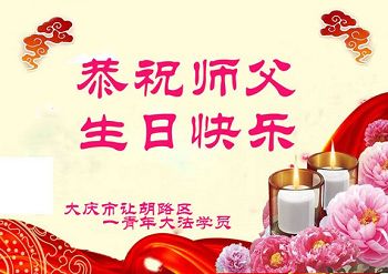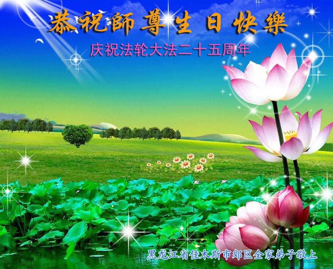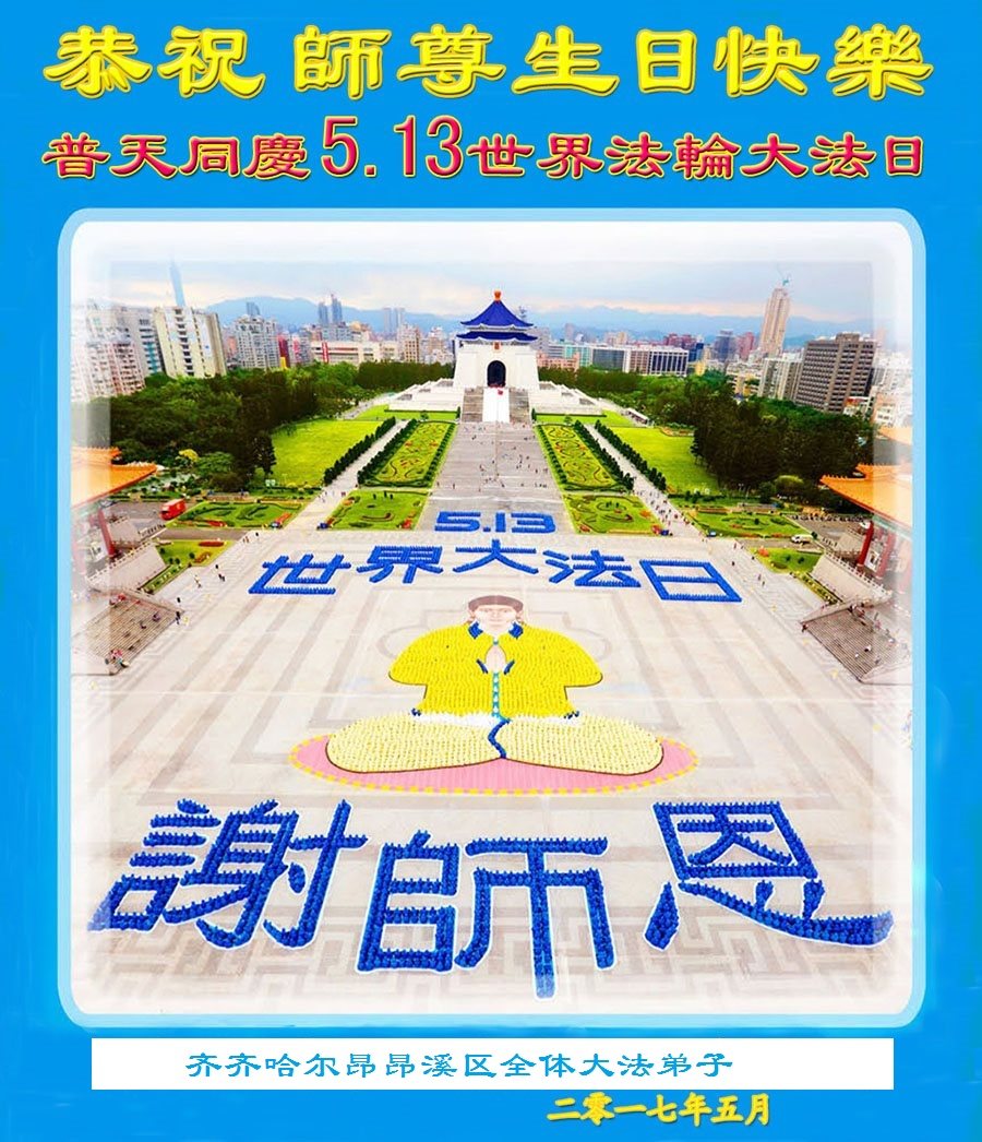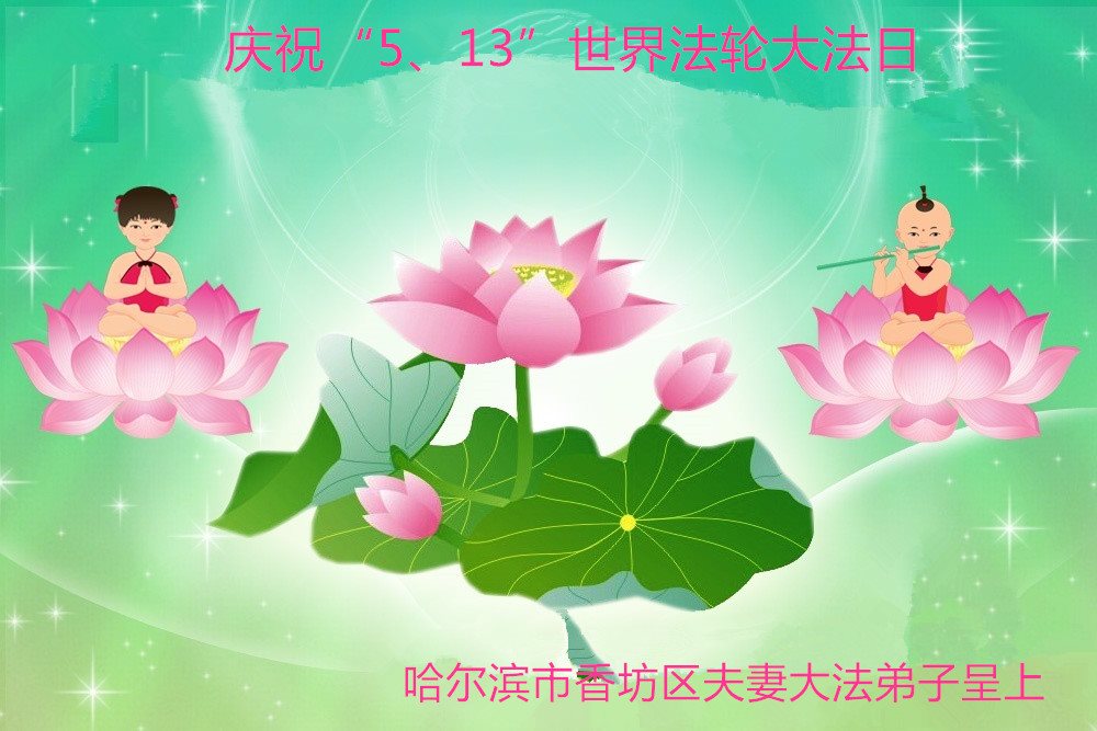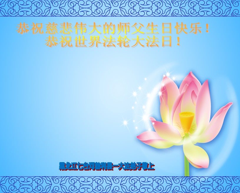 黑龙江省哈尔滨市一位明真相的世人恭祝李大师六十六华诞!恭贺世界法轮大法日!