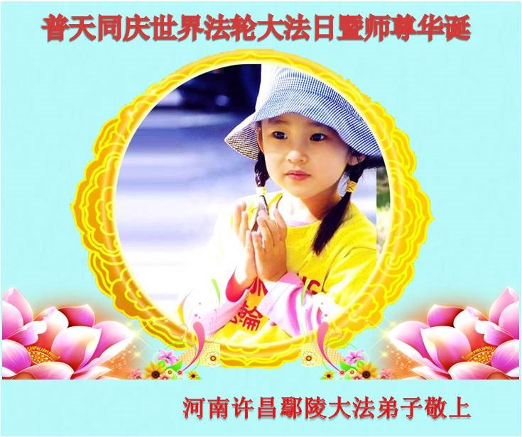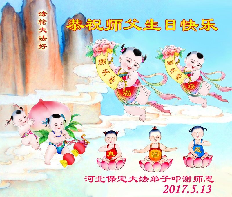 我女儿结婚多年,一直没有孩子,2015年,准备做试管手术。因女儿、女婿都三:退.了,明白大法真相,我就叫他们常念“法轮大法好!真善忍好”九字吉言后,奇迹出现了,女儿来电话说怀孕了,2016年8月12日,生下个女儿。他们很感激师父和大法,在这普天同庆的日子里向师尊表示感谢!祝师父生日快乐!