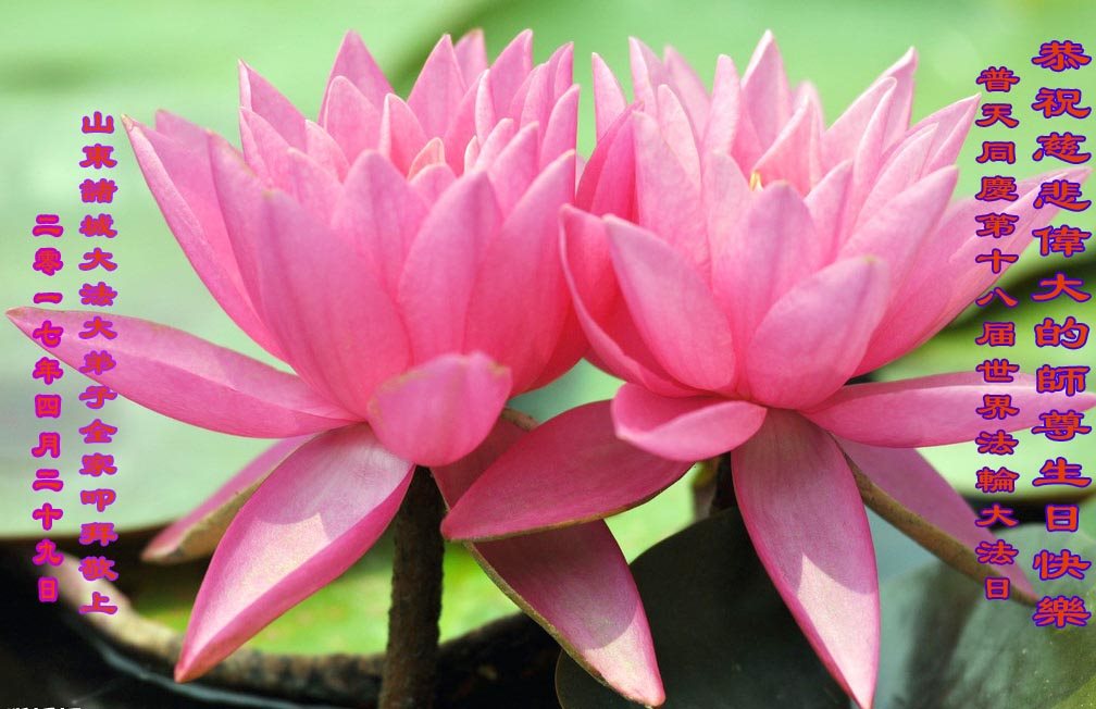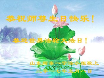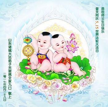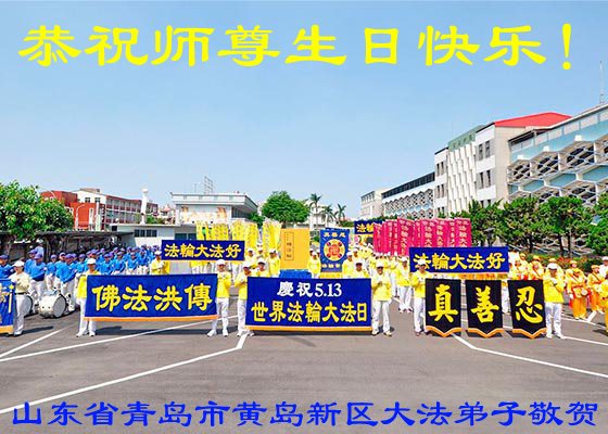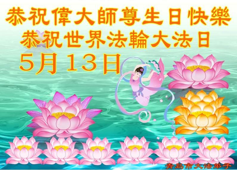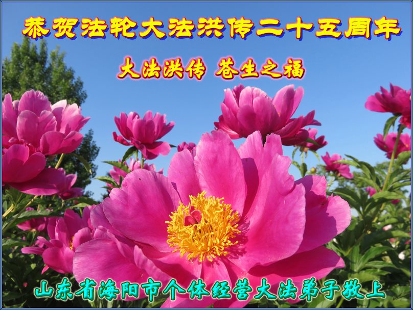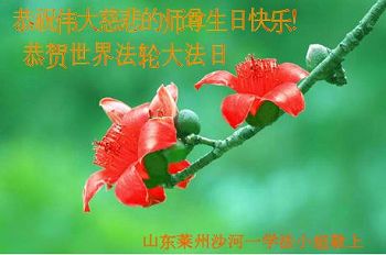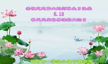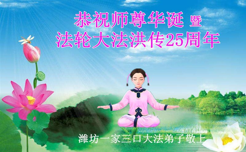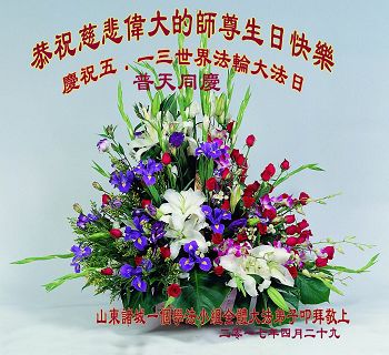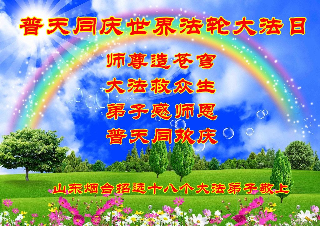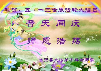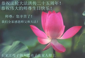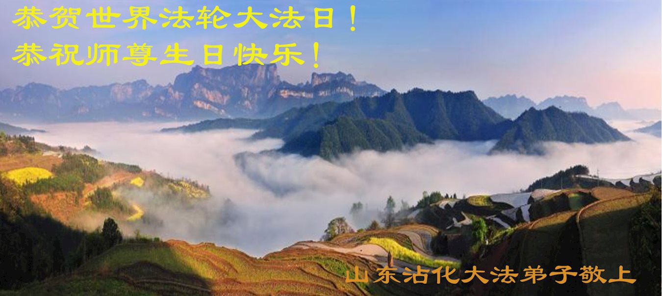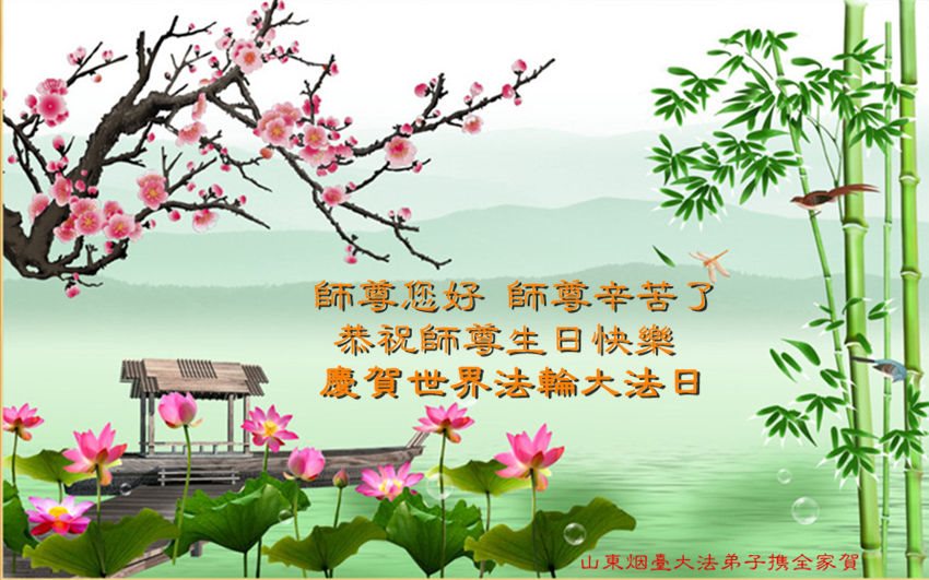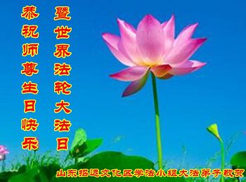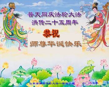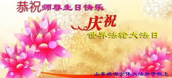 ──山东泰安市全体大法弟子恭贺师尊生日快乐!恭祝师尊华诞暨法轮大法洪传二十五周年!