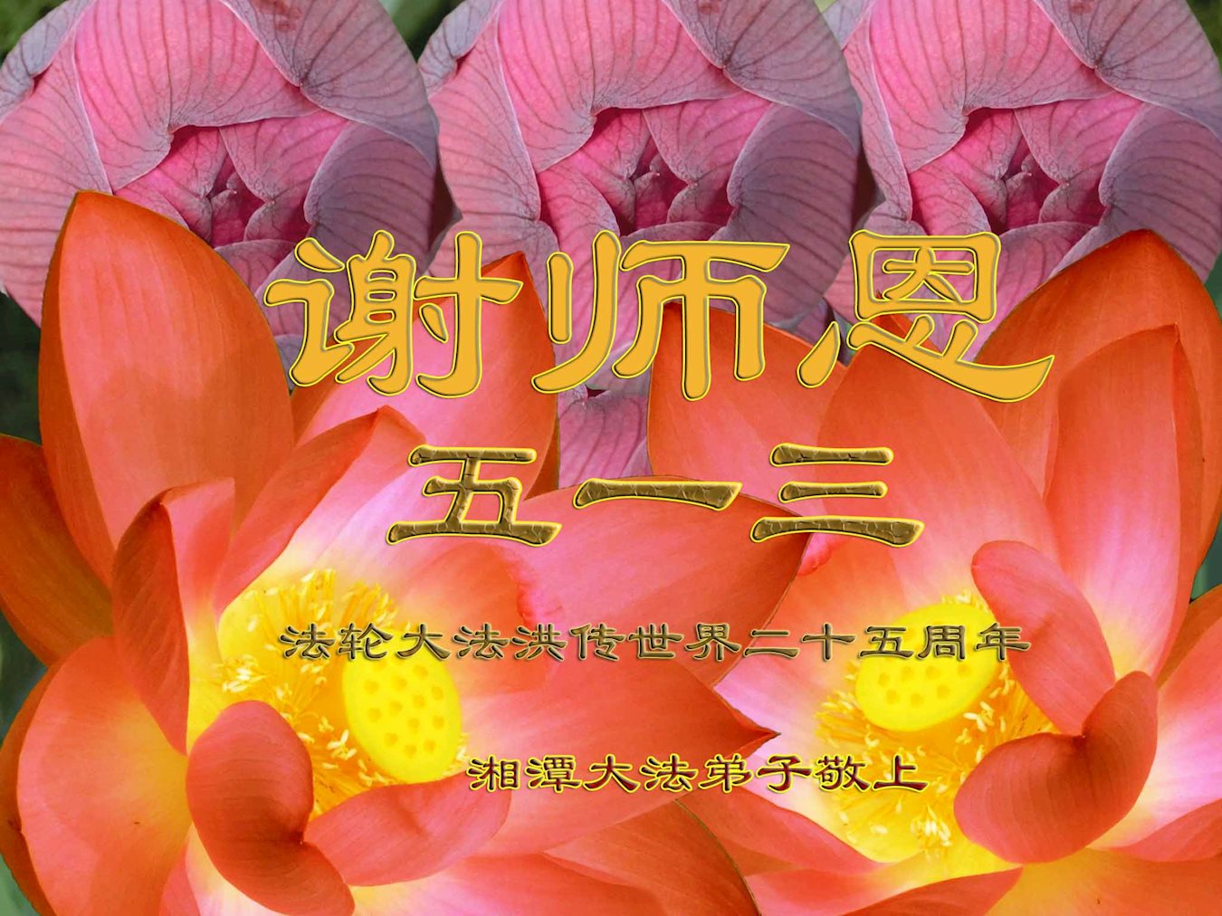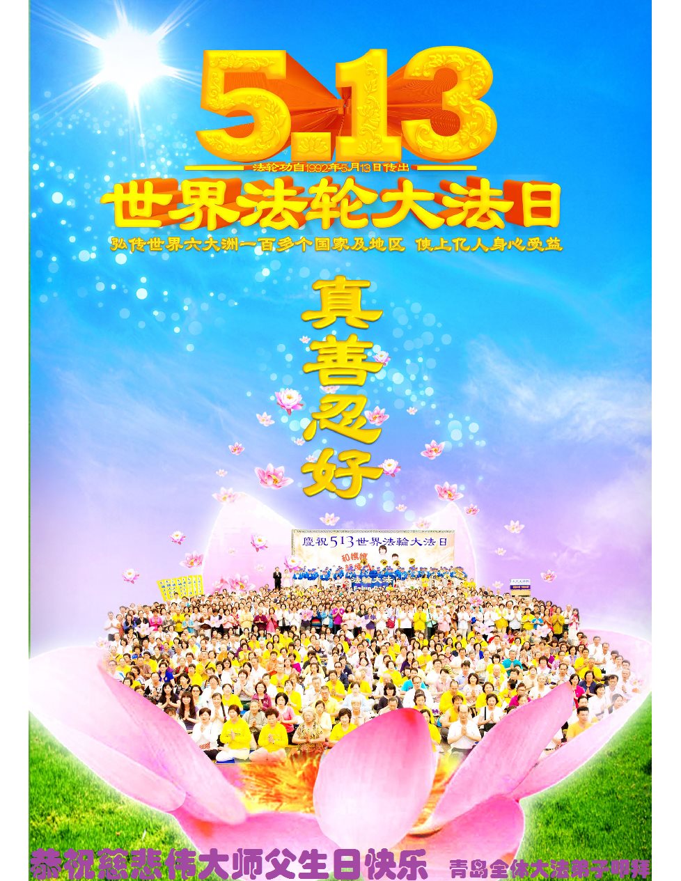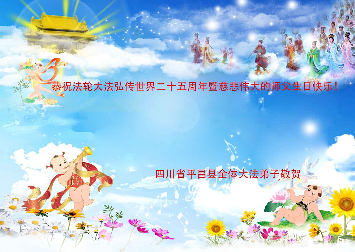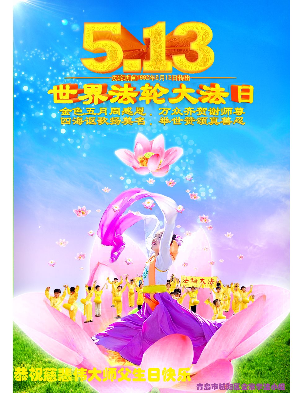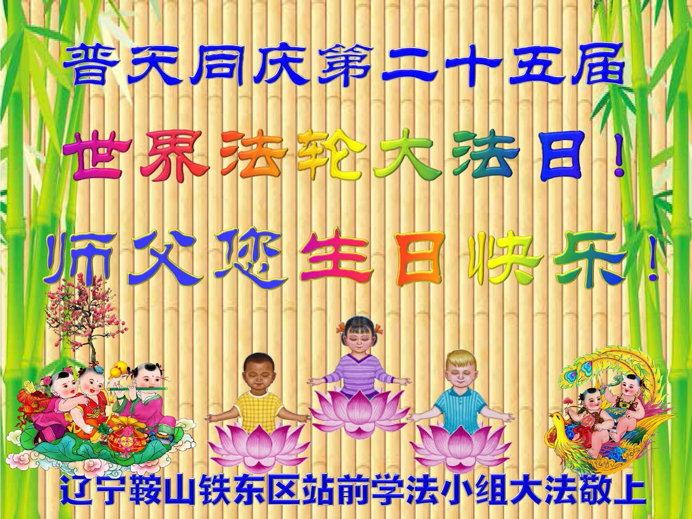 ──山东泰安市全体大法弟子恭贺师尊生日快乐!恭祝师尊华诞暨法轮大法洪传二十五周年!