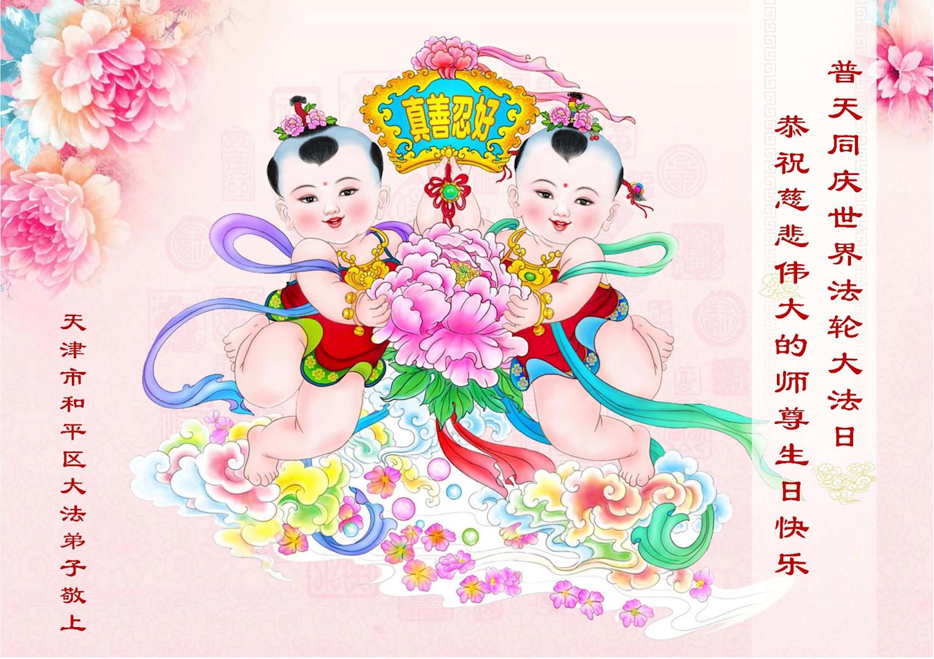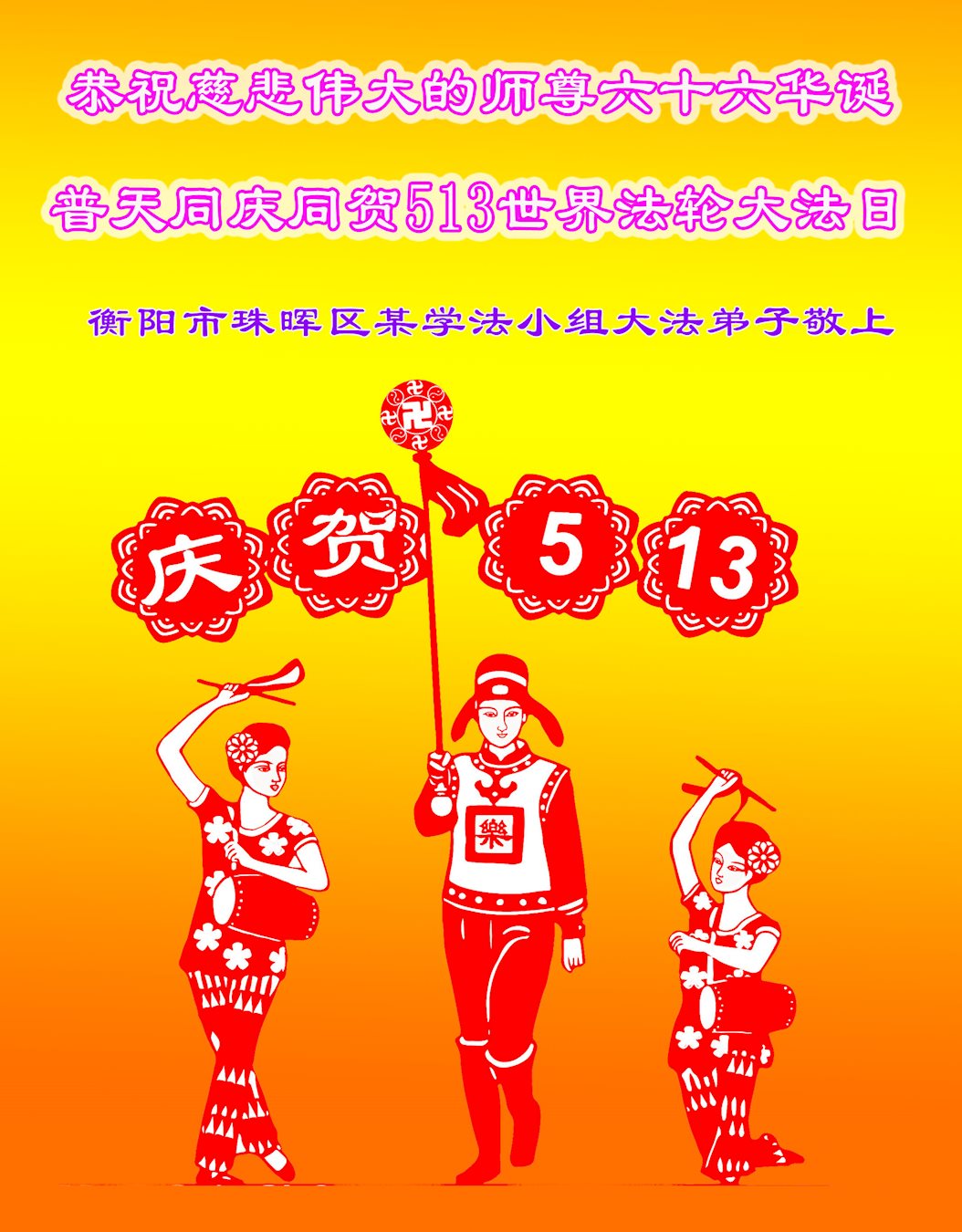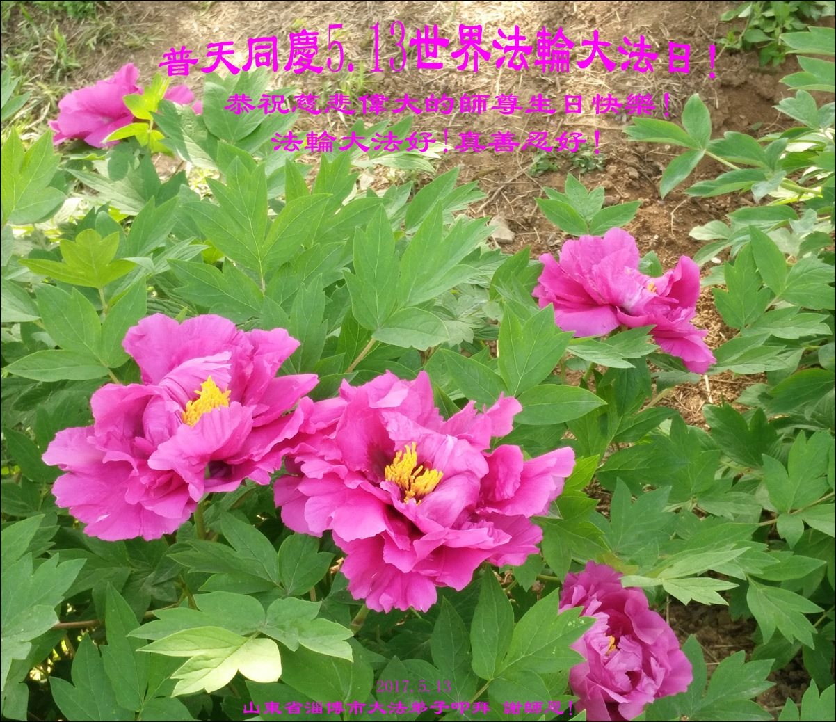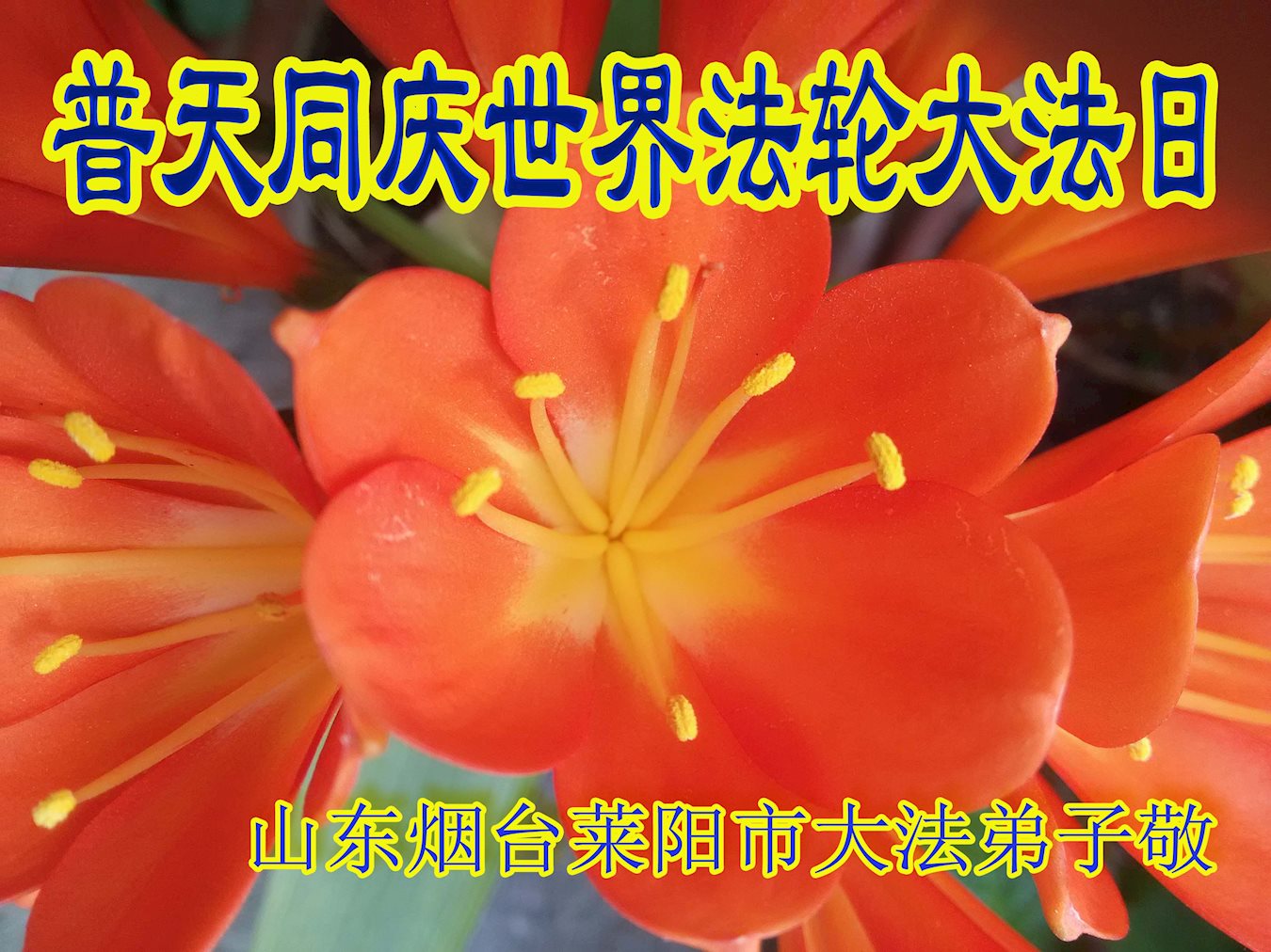 ──山东泰安市全体大法弟子恭贺师尊生日快乐!恭祝师尊华诞暨法轮大法洪传二十五周年!