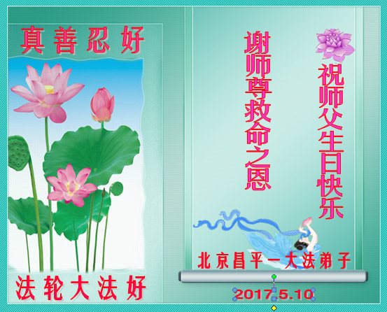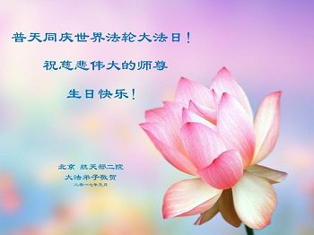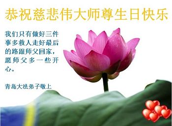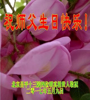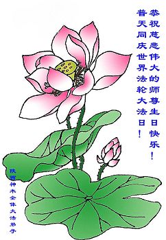 我的母亲是法轮功学员,我知道法轮大法好,祝师父生日快乐!在我的心里师父是最好的,大法是最正的!