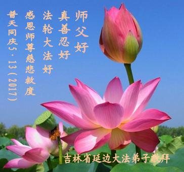 在法轮大法日到来之际,吉林延边明真相的民众衷心感谢李大师慈悲苦度,恭贺李大师生日快乐!