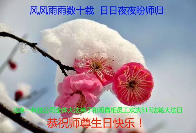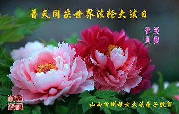 我们是在同修办的公司中上班的大法弟子,公司中几乎全部员工都做了三:退.,在师父的加持下,我们稳步的走在证实法的路上,公司的生意也蒸蒸日上,我们代表全体员工恭祝师尊六十六岁华诞和第十八届世界法轮大法日,在这正法尽在收尾之日,我们一定做好三件事,向师父交一份满意的答卷。