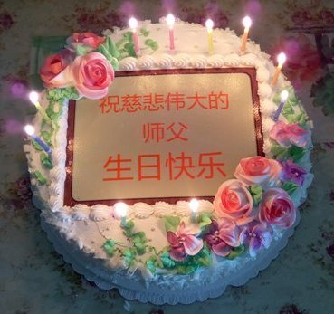 我到蛋糕房定做蛋糕,选好了样品,叫他写上祝师父生日快乐!他问我你师父是谁