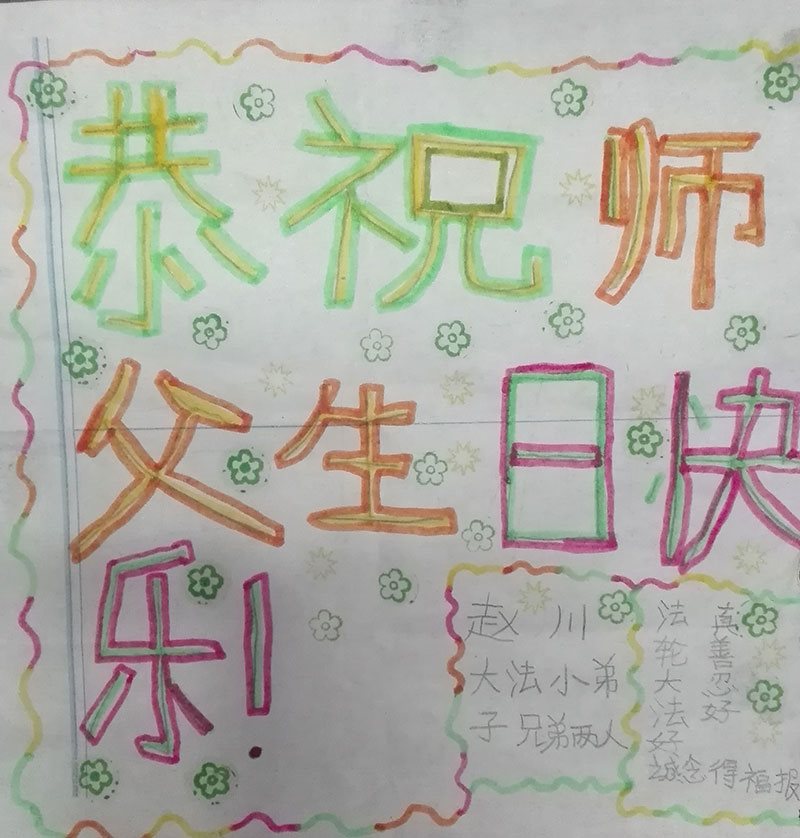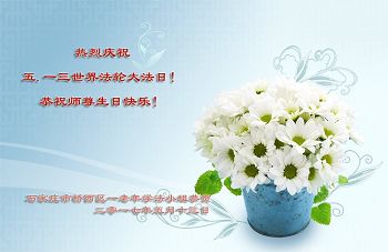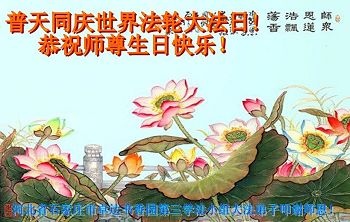 我叫大鹏,是大法弟子亲属,今年十二岁,恭祝李洪志师父生日快乐!