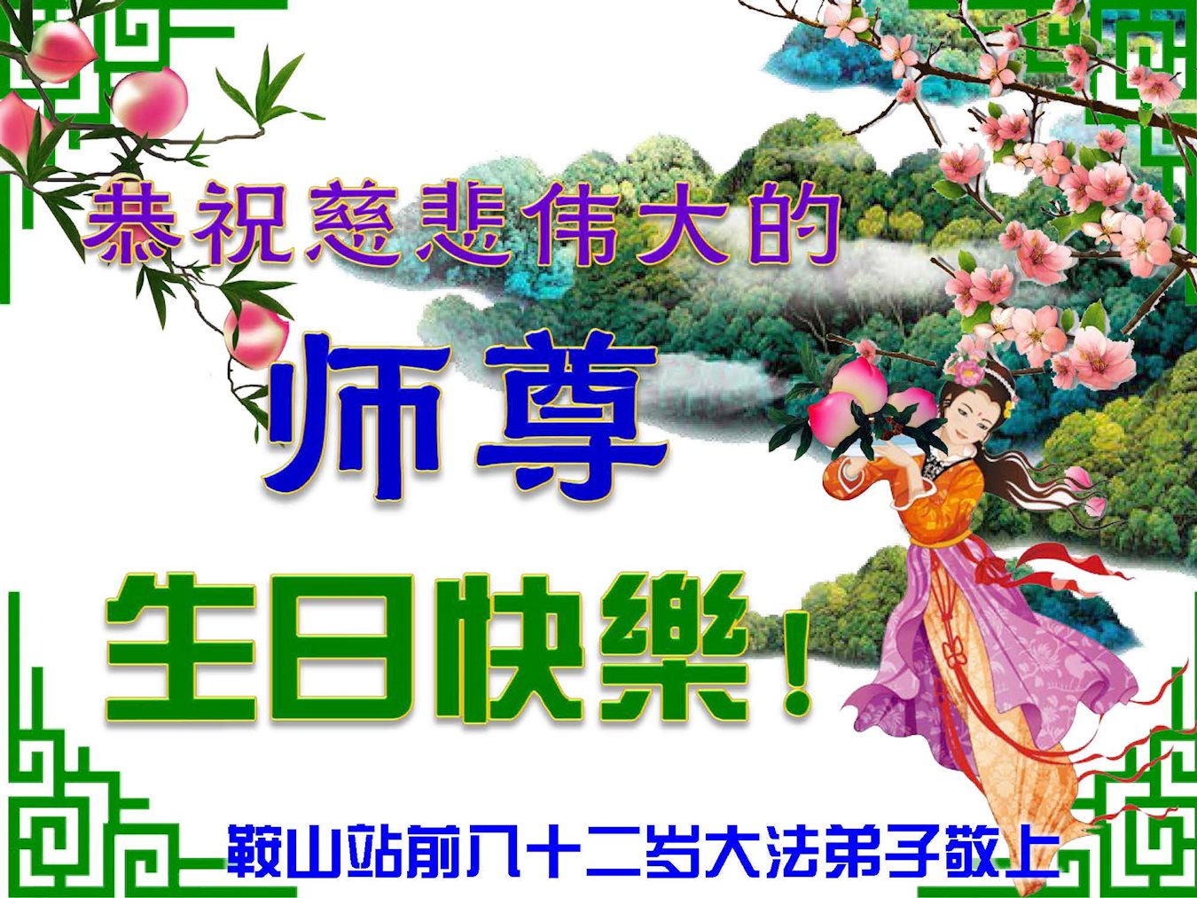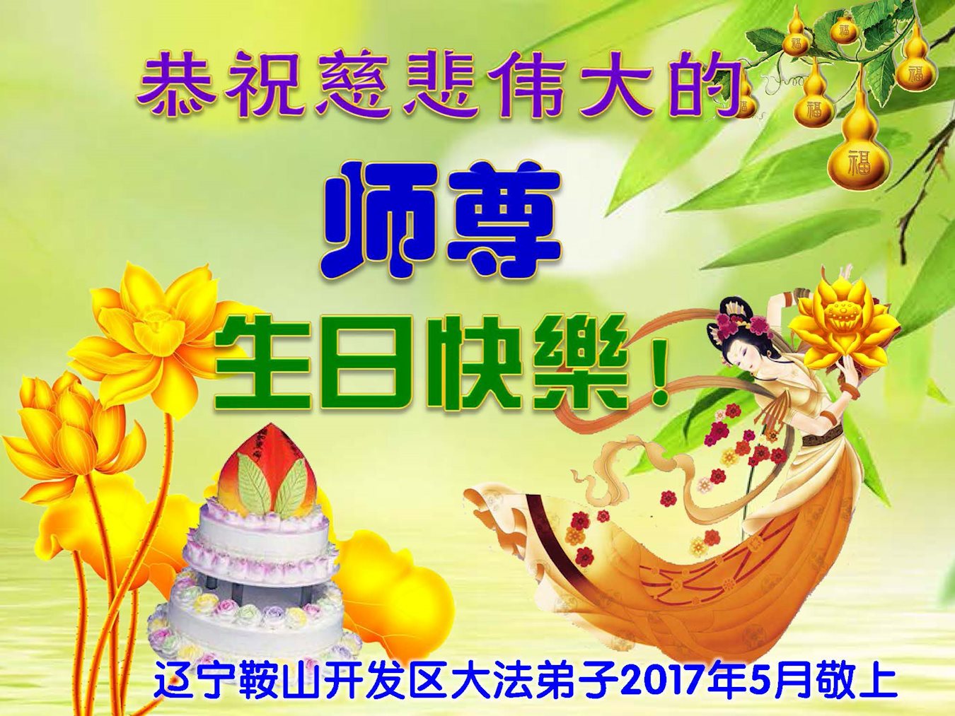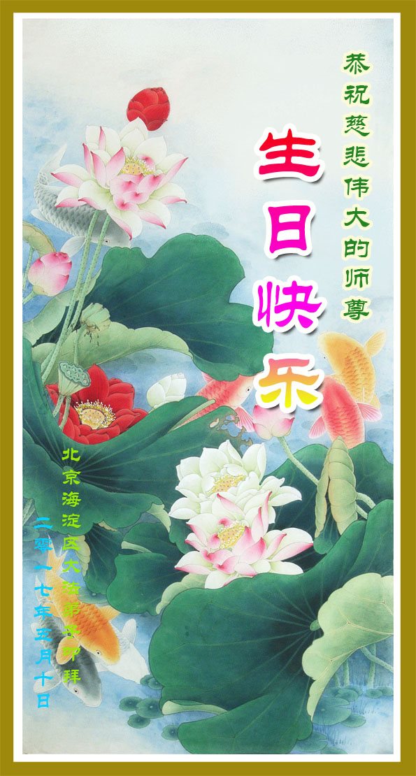 祝李大师生日快乐!身体健康,福如东海,寿比南山,法轮大法好!真、善、忍好!