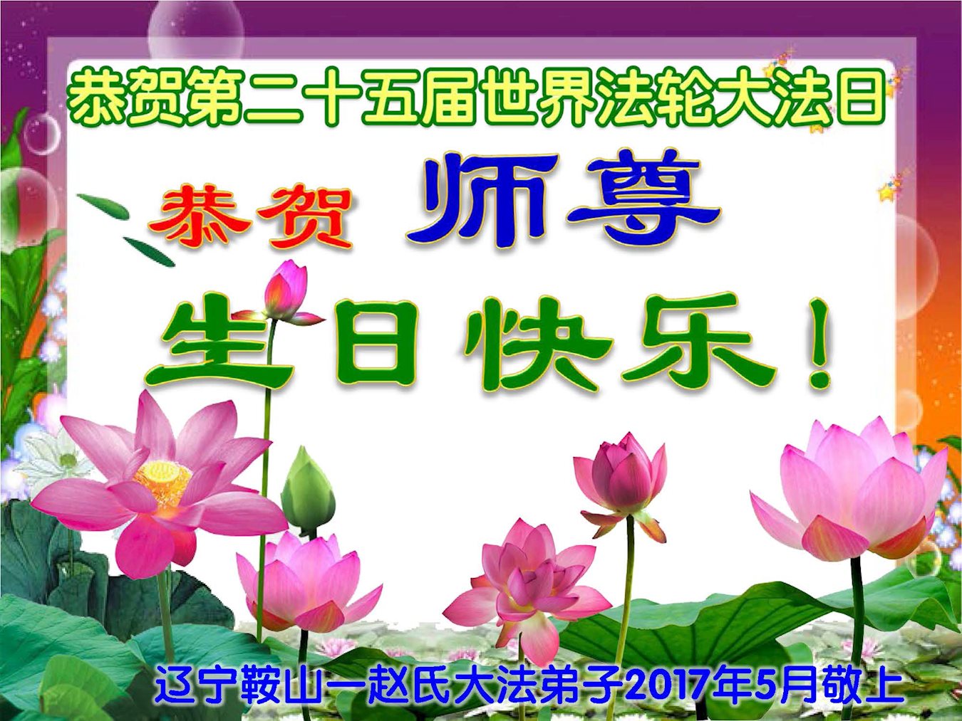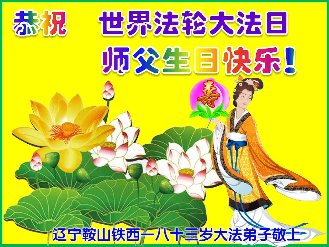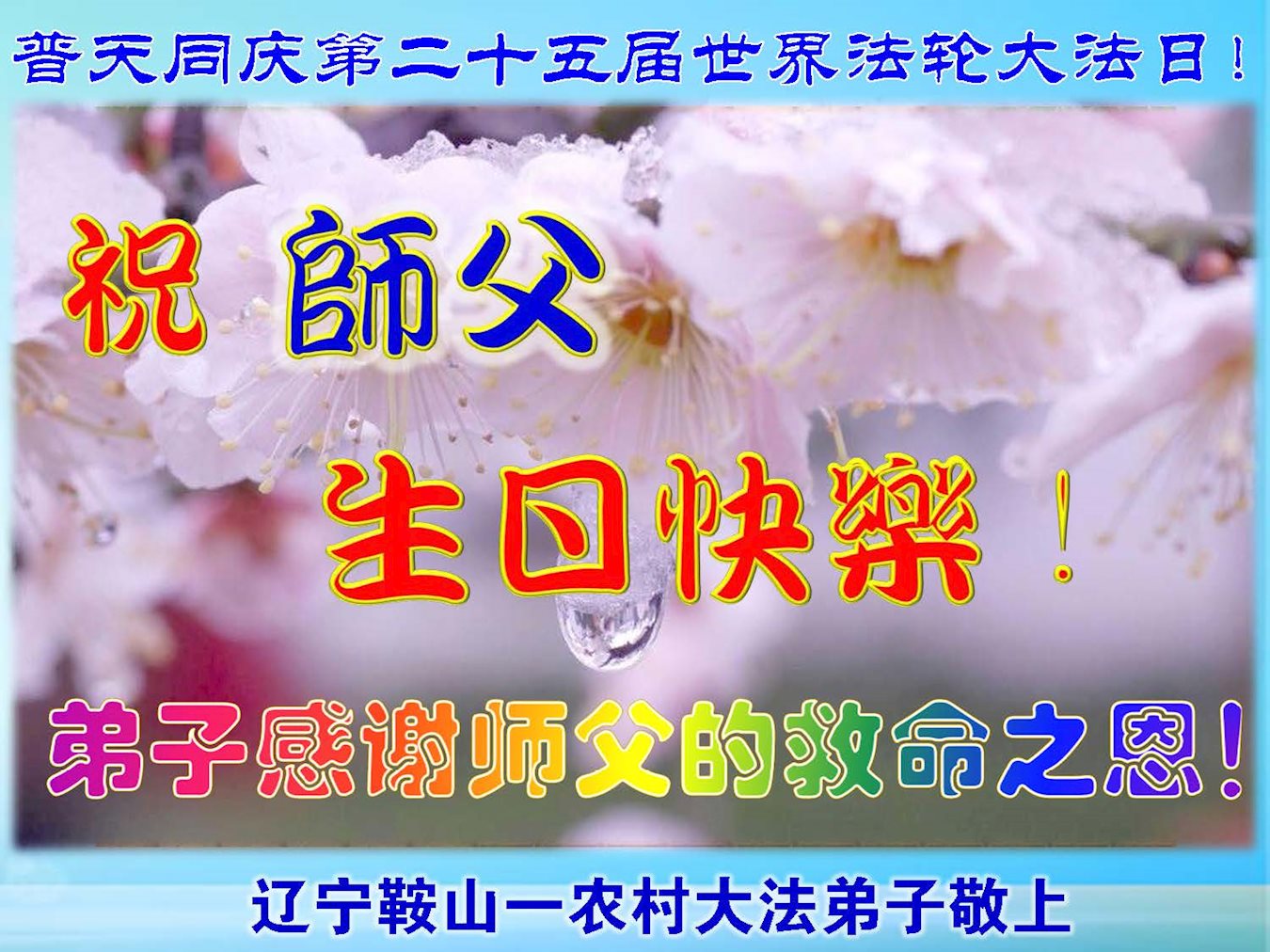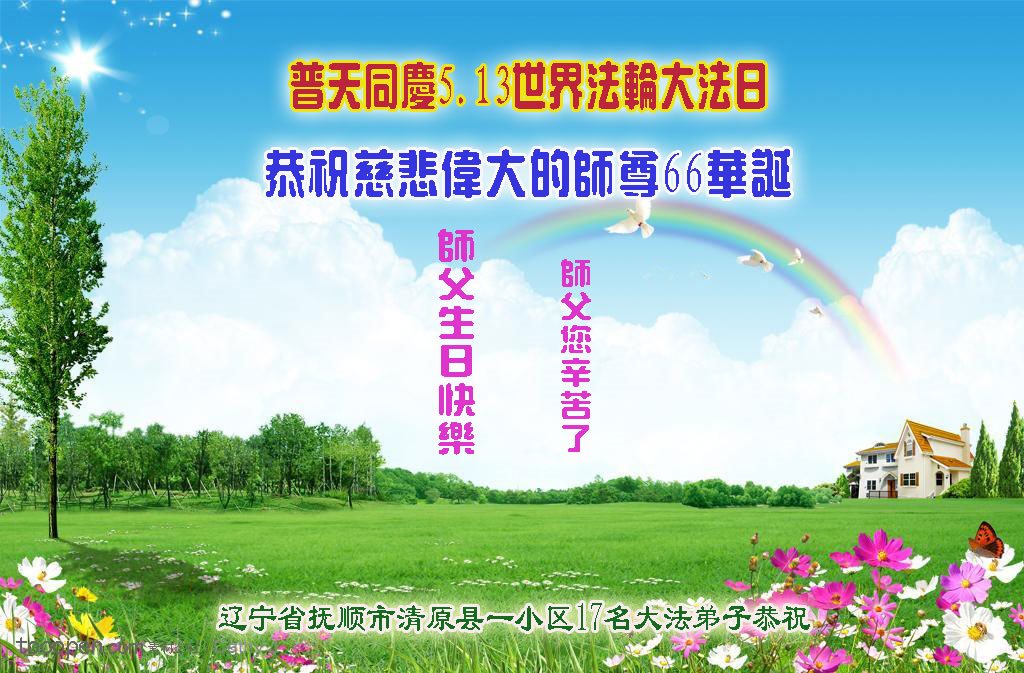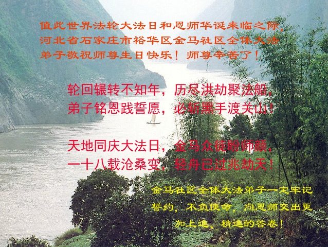 ──河北省唐山丰润区全体大法弟子叩谢师尊慈悲苦度!恭祝师尊生日快乐!