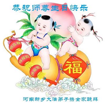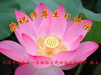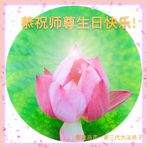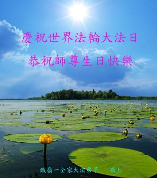 在世界法轮大法日暨师尊六十六岁华诞即将到来之际,我们代表全家人向慈悲、伟大的师尊问好!恭祝师尊生日快乐!师尊正法辛苦了!