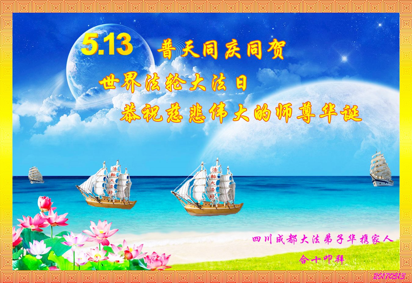 热烈庆祝法轮大法洪传全世界!我们永远记住法轮大法好!真善忍好!