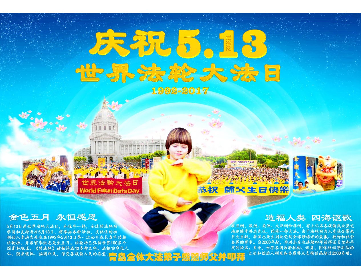 祝师父生日快乐!欢庆第十八届世界法轮大法日!