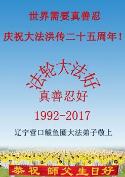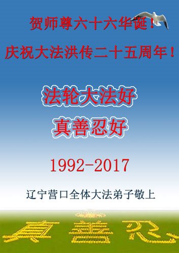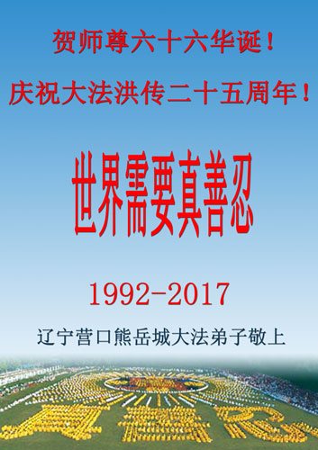 辽宁营口世人王静波恭祝李大师生日快乐!希望法轮大法常在人间!