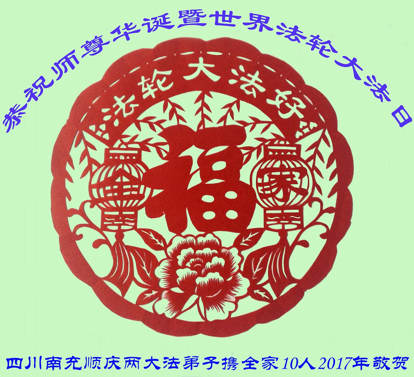四川省绵阳市一家袓孙三代全部“三:退.”的共十一人,感谢李洪志师父慈悲救度,特此,敬祝李洪志师父生日快乐! 并庆贺“五一三世界法轮大法日”的到来!