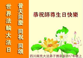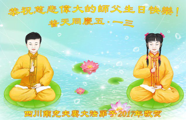 ──四川遂宁市夫妻大法弟子恭祝师尊生日快乐!
