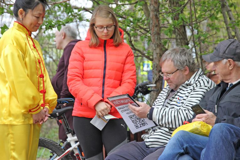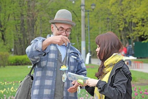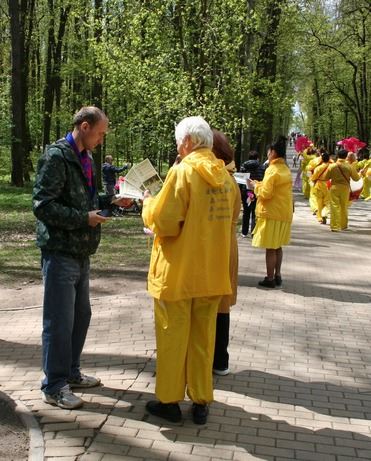 '图3~8:法轮功学员在莫斯科市菲利公园讲真相'
