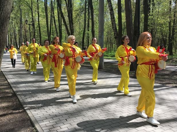 【明慧网二零一七年五月十四日】为庆祝“第十八届世界法轮大法日”暨法轮大法弘传世间二十五周年,俄罗斯法轮功学员于二零一七年五月十三日当天,在莫斯科市菲利公园欢歌载舞;以腰鼓表演,舞蹈,唱歌,舞狮和功法演示等多姿多彩的方式和当地民众共同庆祝这一节日。
