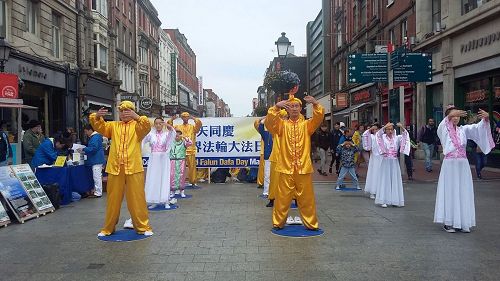 ![]() 图2:爱尔兰法轮功学员在都柏林市中心举行游行,庆祝世界法轮大法日 |