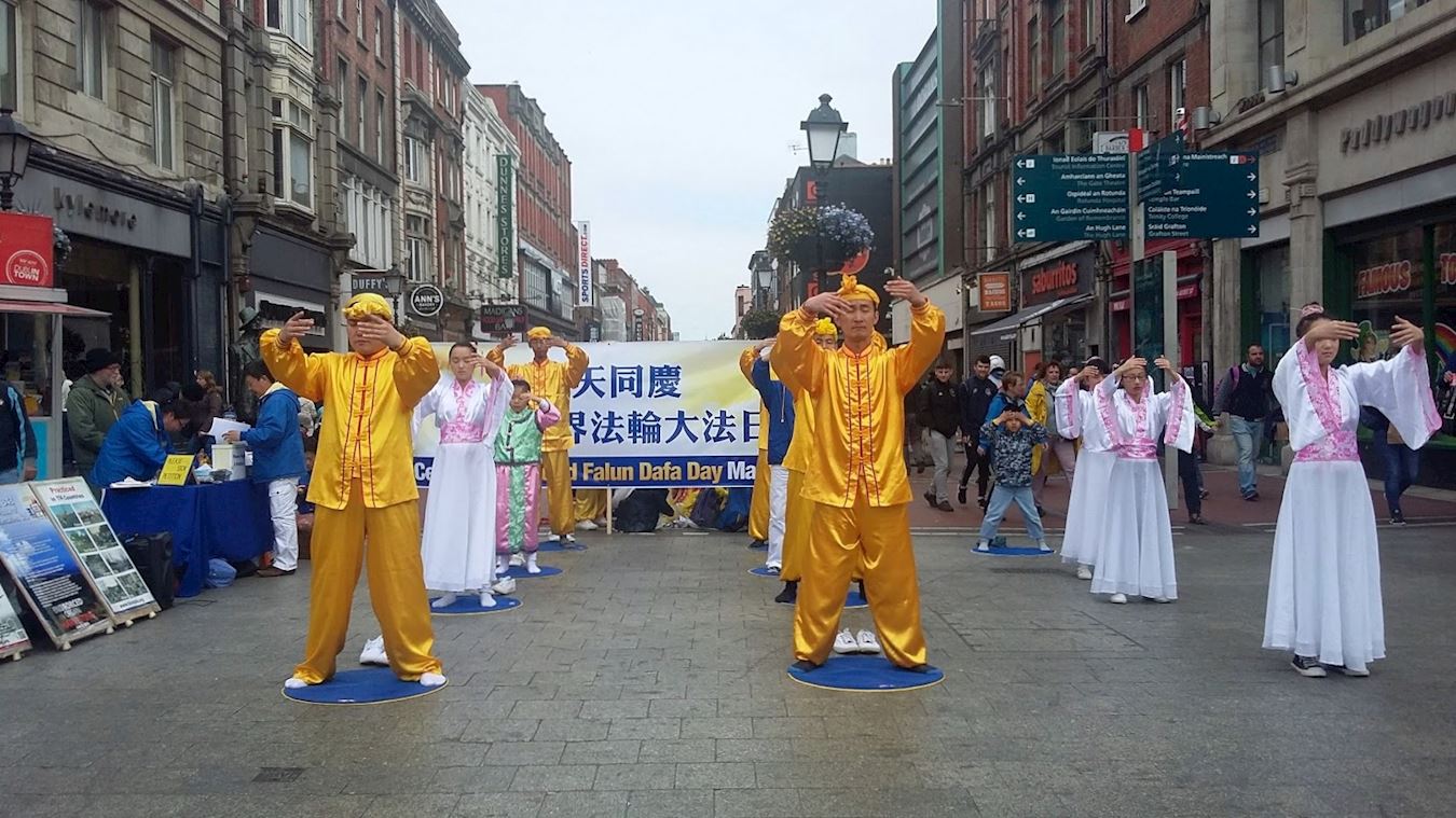 游行从纪念花园开始,途经华人街和市中心的主要街道奥康纳大街,最后在都柏林邮政总局结束,之后在此集会。法轮功学员表演了莲花舞、狮子舞、唐鼓、并展示五套功法。